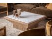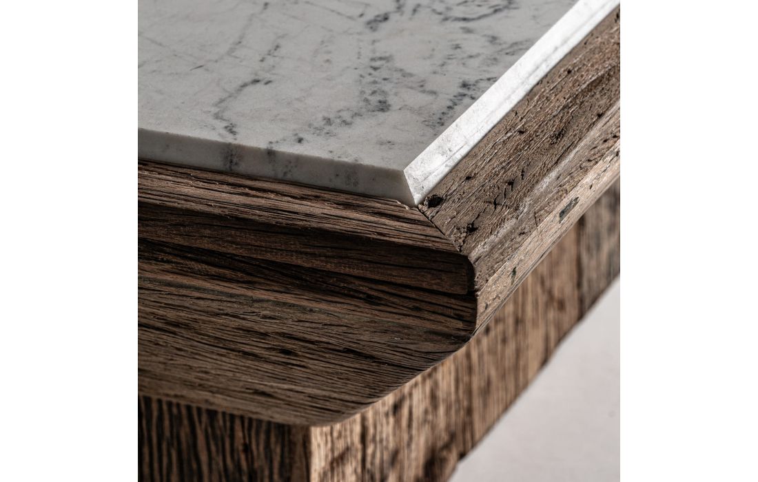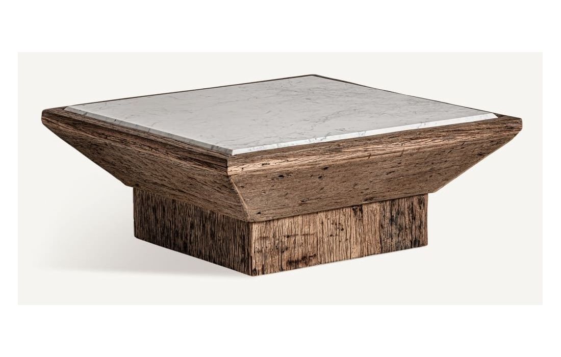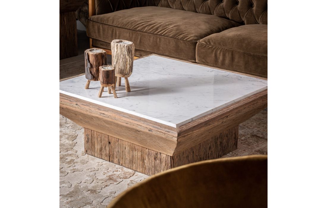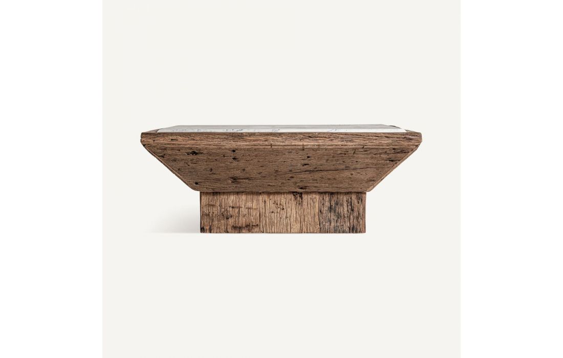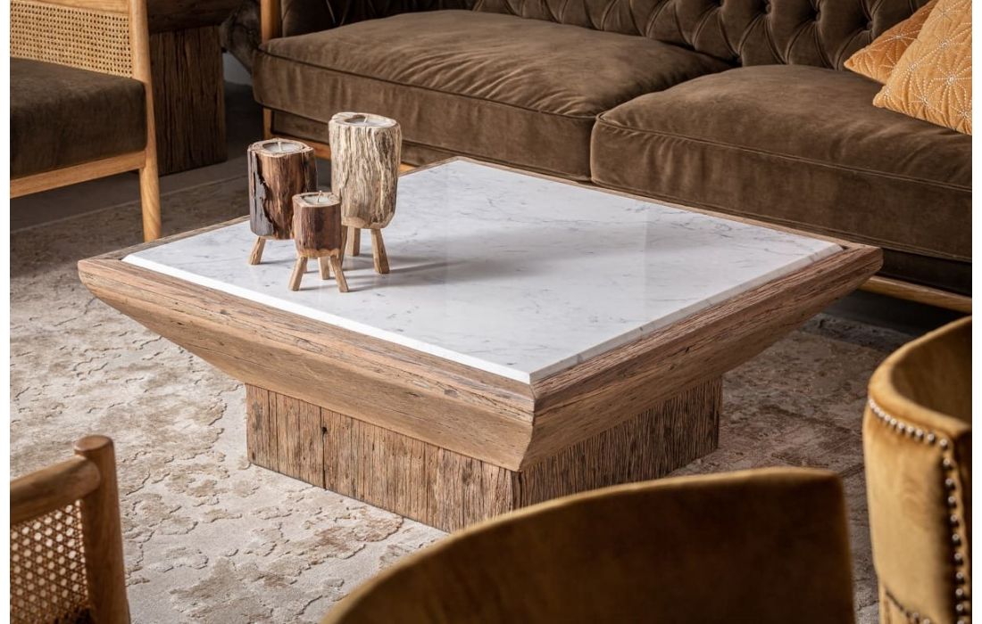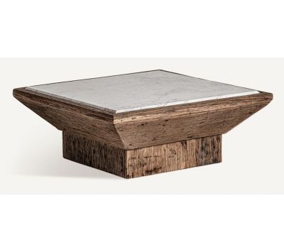 Mesa de centro quadrada com estrutura em madeira de pinho e tampo em mármore.Destinatário :
