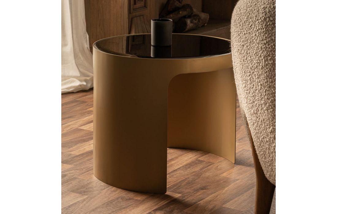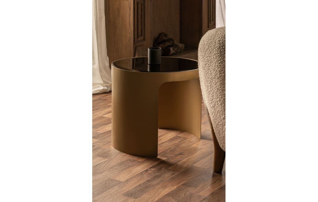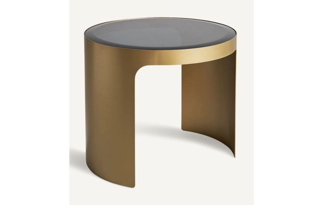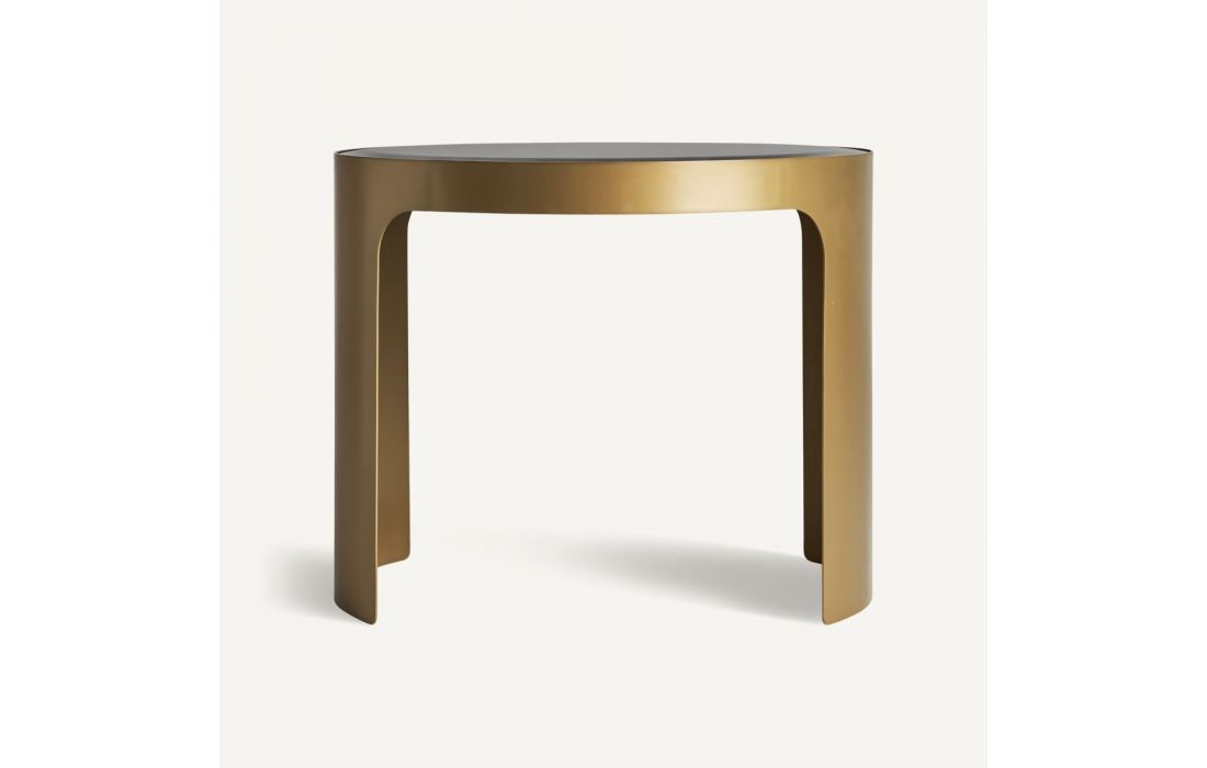 Mesa de centro estilo art déco feita em ferro e cristal na cor douradaDestinatário :