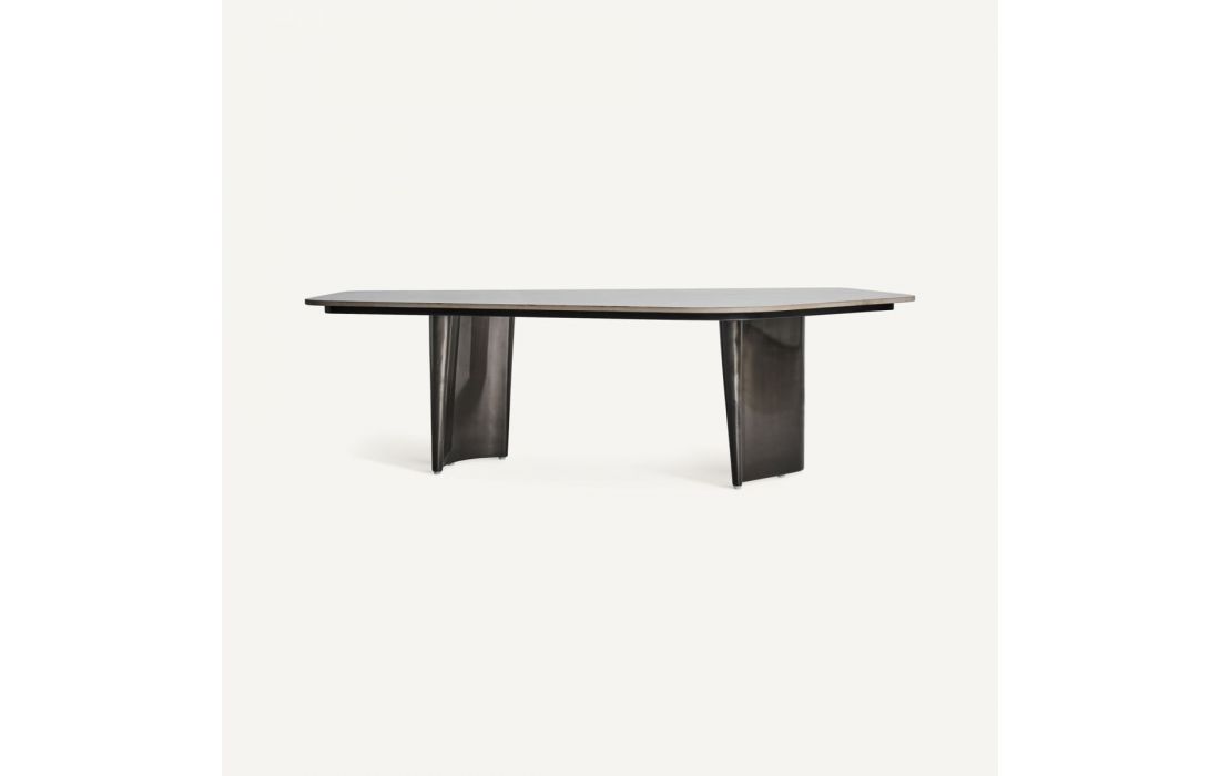 Mesa de centro estilo art déco feita em aço e mármore sintético nas cores preto e cinzaDestinatário :