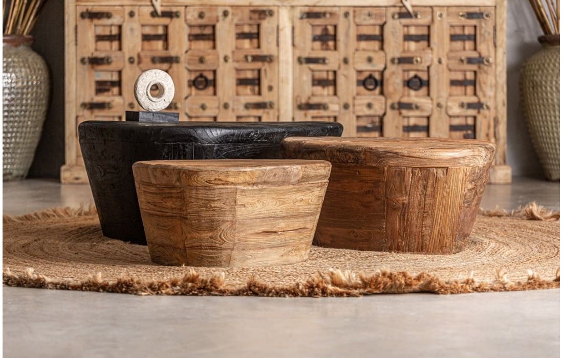Mesa de centro estilo contemporâneo feita em madeira de teca na cor castanhaDestinatário :