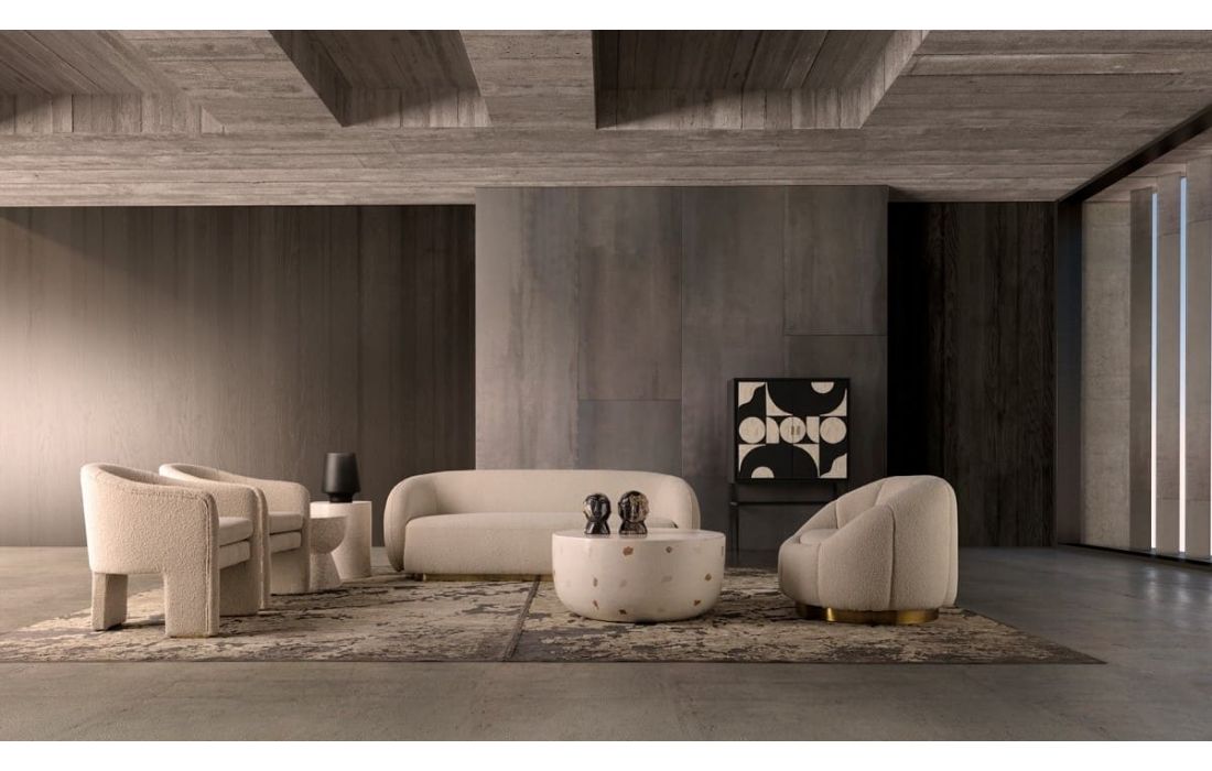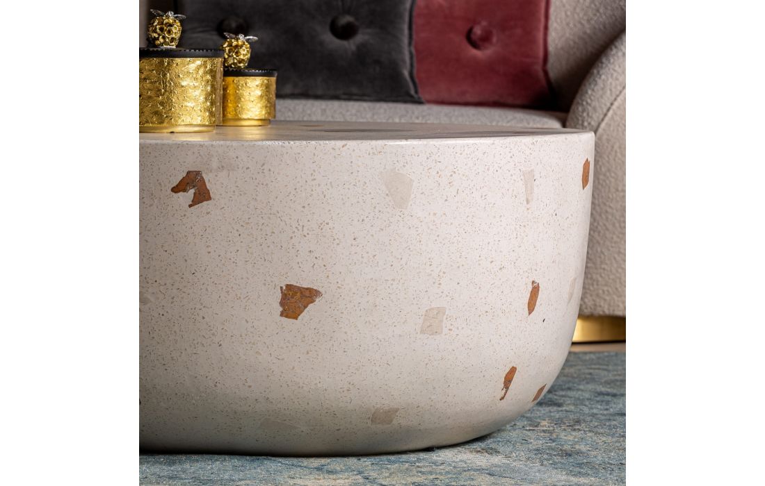 Mesa de centro estilo contemporâneo feita em terrazzo na cor brancaDestinatário :
