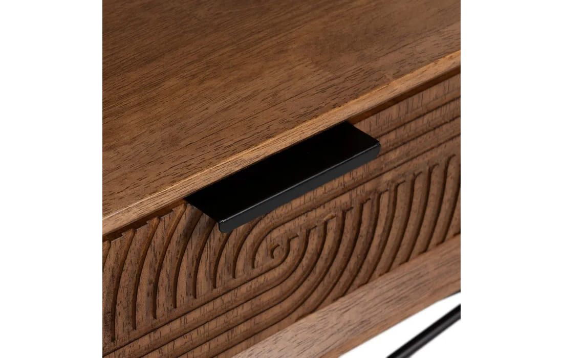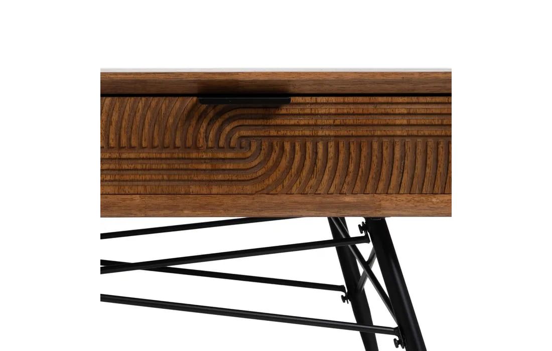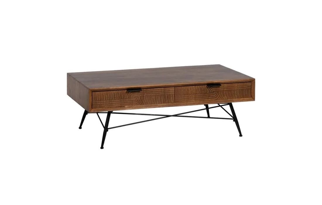 Mesa de centro com estrutura em madeira e metal na cor castanha e preta.Destinatário :