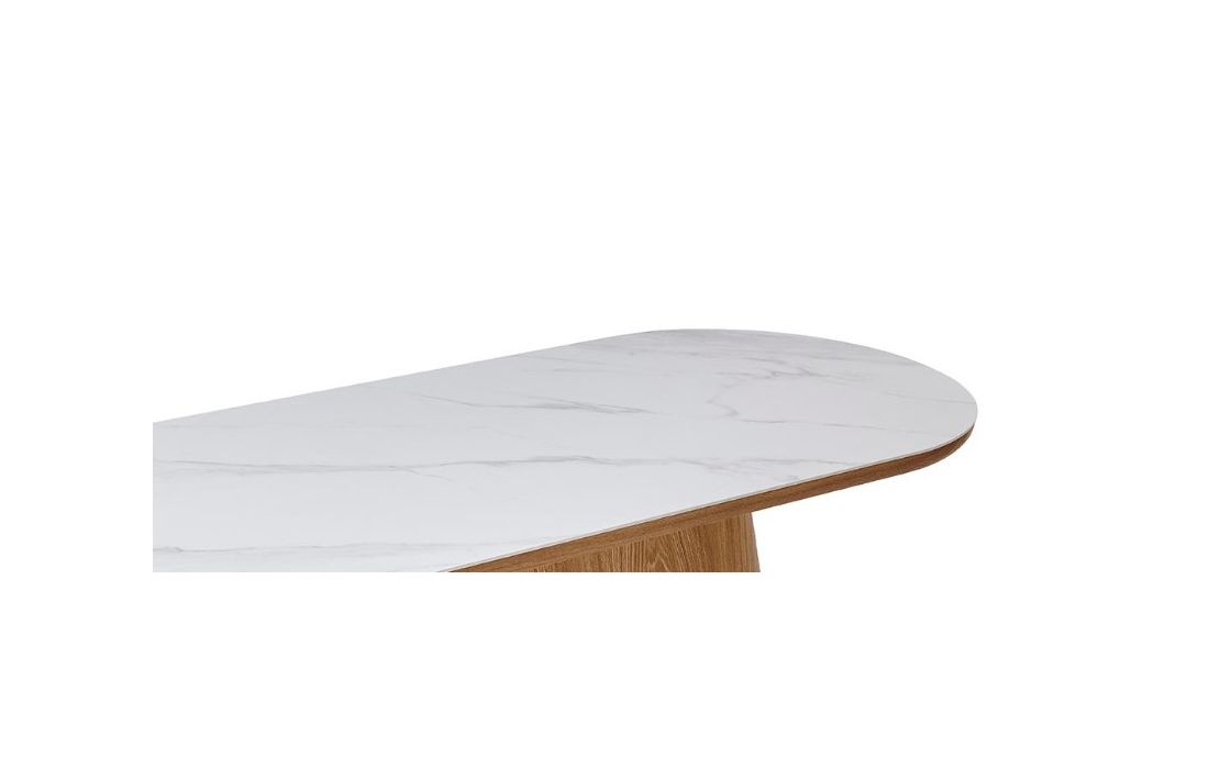 Mesa de centro com estrutura em folha de carvalho e negueira com tampo em porcelana.