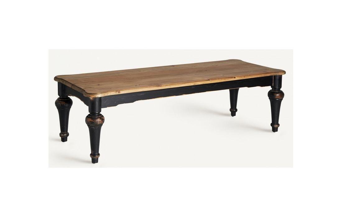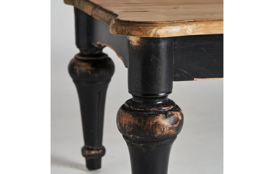 Mesa de centro no estilo provençal confeccionada em madeira de olmo na cor preta