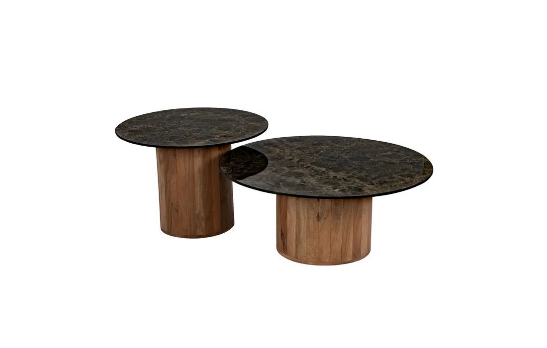 Conjunto mesas de centro em madeira de acácia e cerâmica com estilo modernoDestinatário :