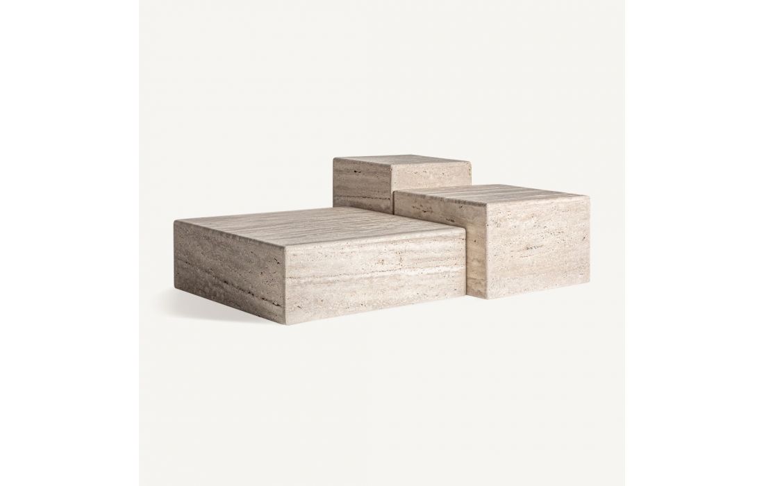 Mesas de centro que combinam simplicidade e personalidade, feita em travertino com o seu design minimalista com influências Art Déco realça qualquer espaço com a sua textura natural e presença serenaDestinatário :