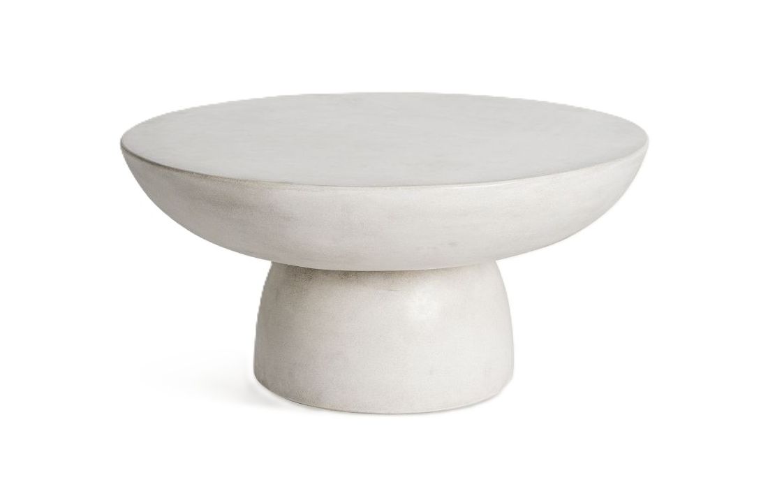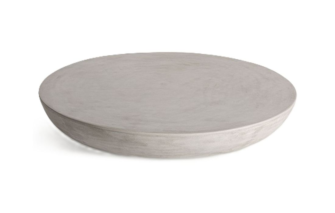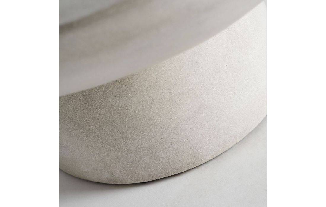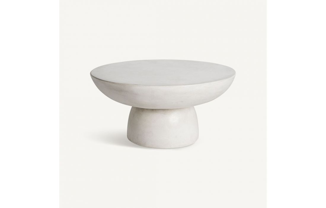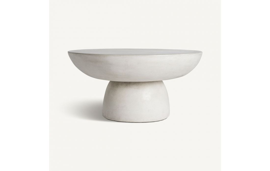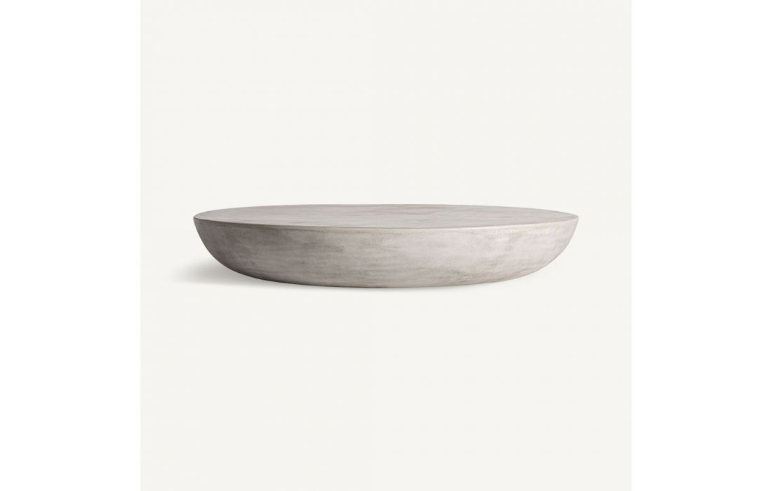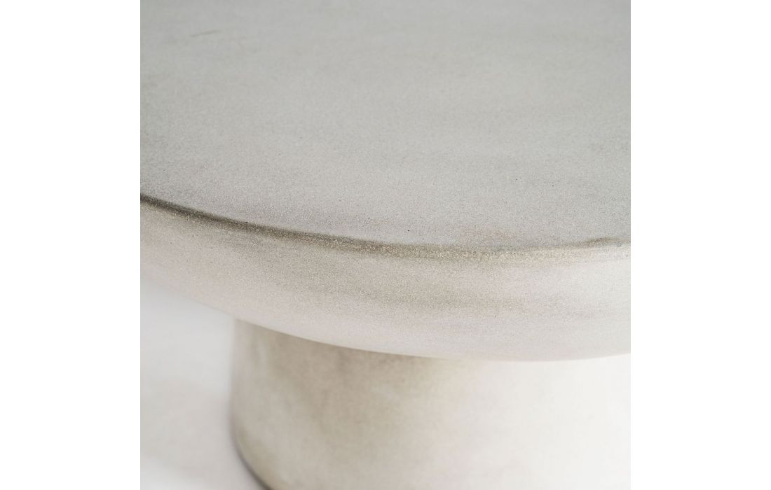 Mesa de centro fabricada em cimento com acabamento mate, destaca-se pela sua textura mineral e design discretoDestinatário :