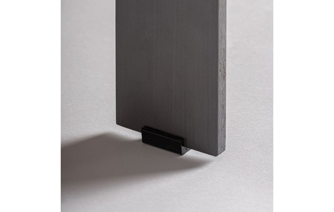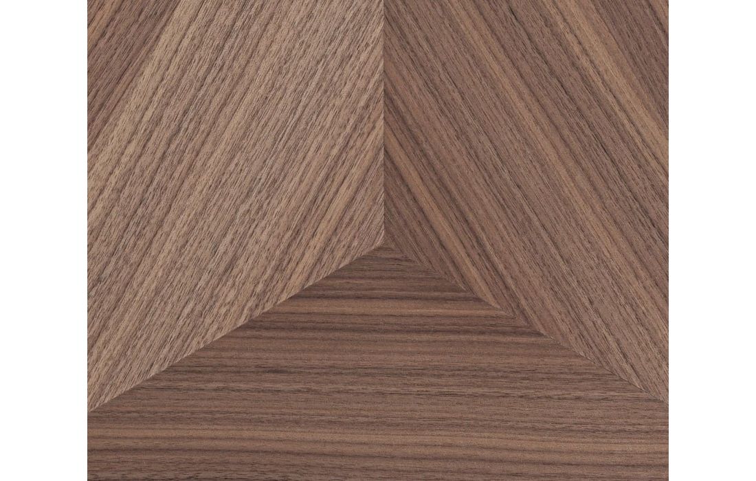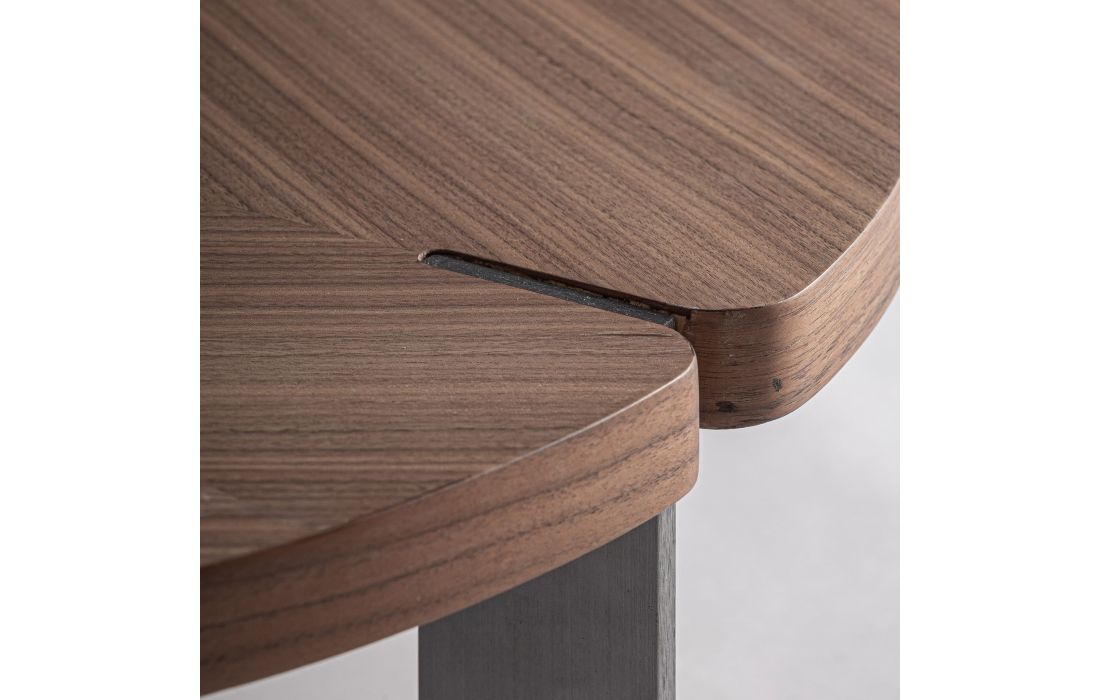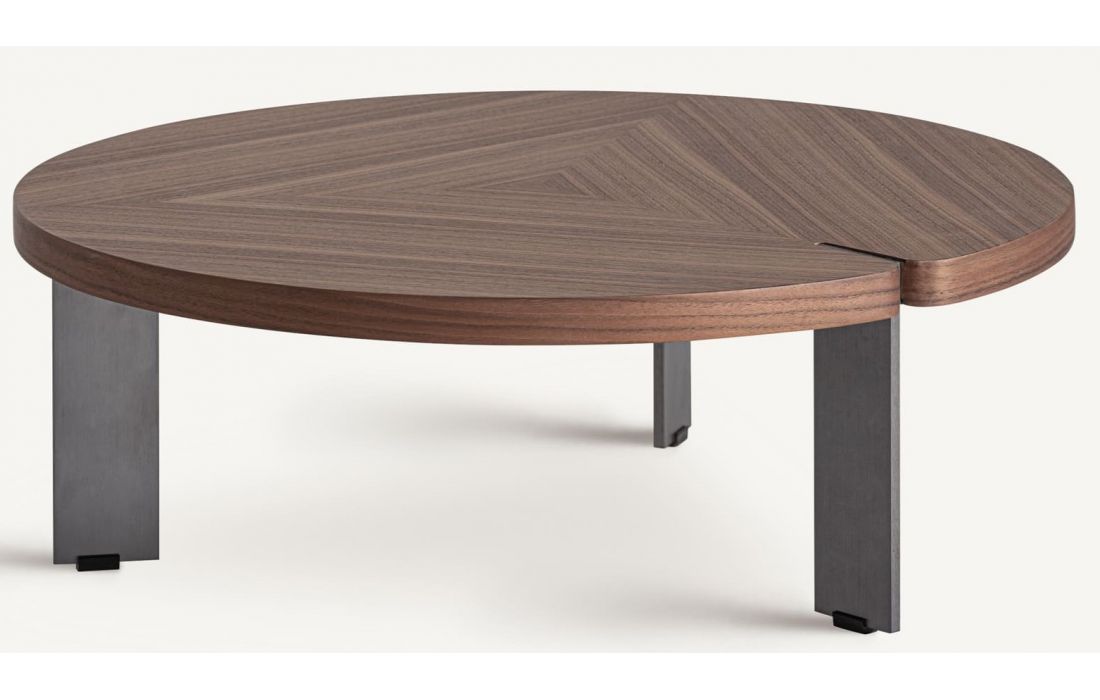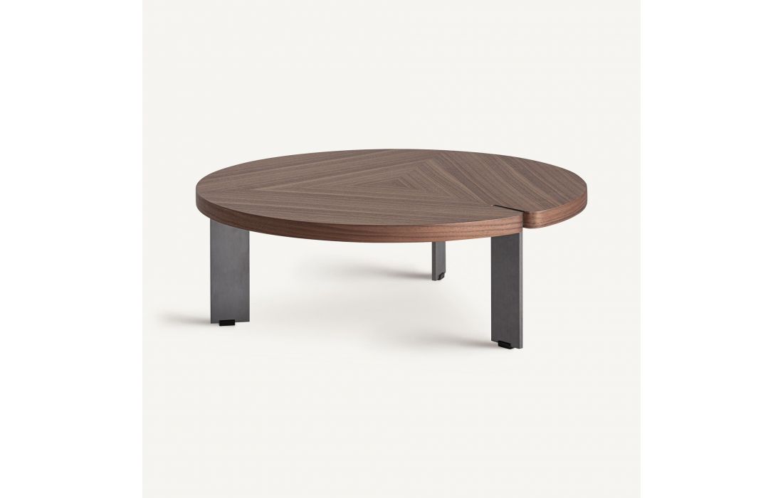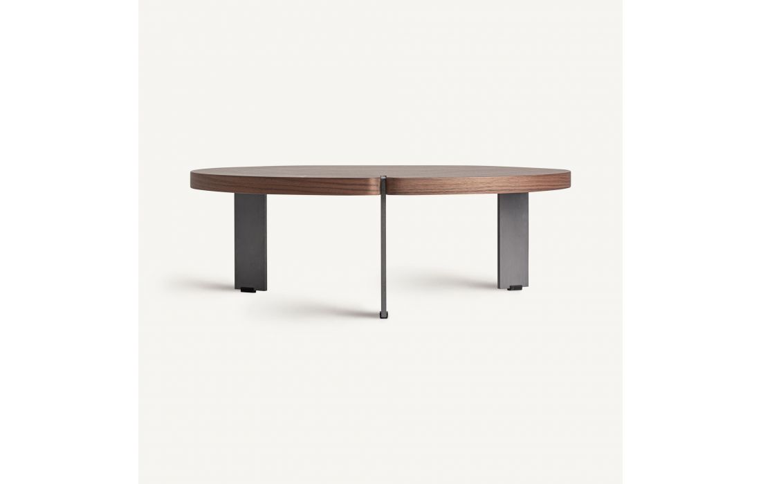 MESA CENTRO GENEIKEN de estilo contemporâneo, feita de MDF, combinada com folheado de madeira nogueira e aço inoxidável.Destinatário :