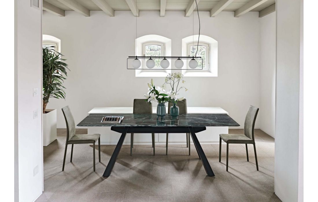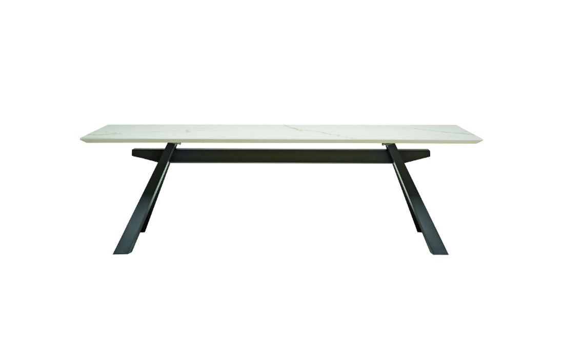 Mesa de jantar com pés aço branco ou aço grafite com tampo em cerâmica com efeitos em mármore