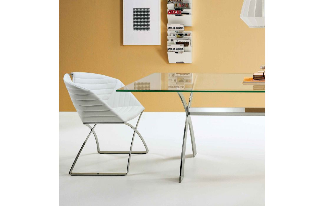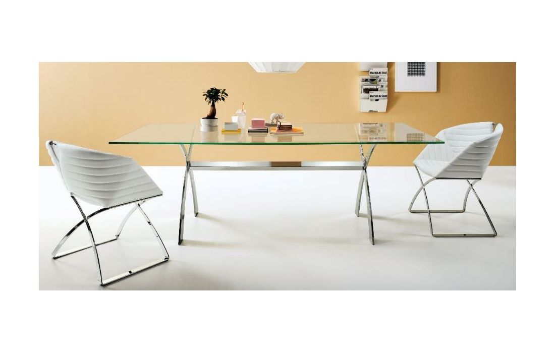 Mesa de jantar com estrutura cromada, aço branco ou grafite com tampo em vidro transparente extra claro