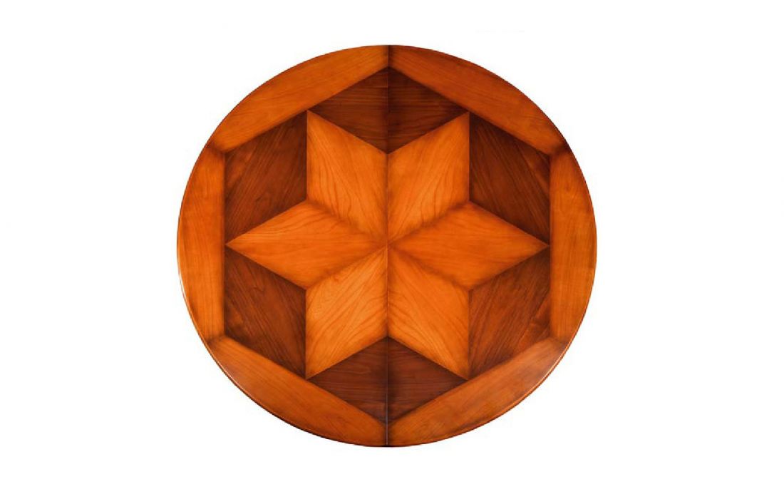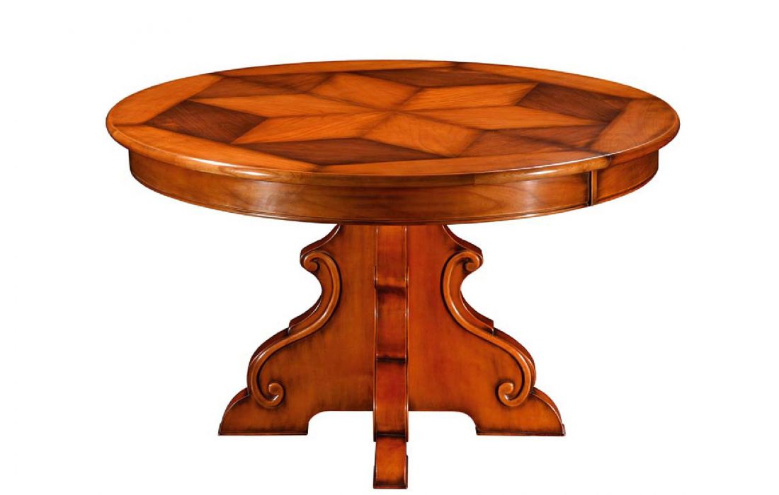 Mesa extensível com 2 extensões e com pé central, design provençal com possibilidade de vários acabamentos.