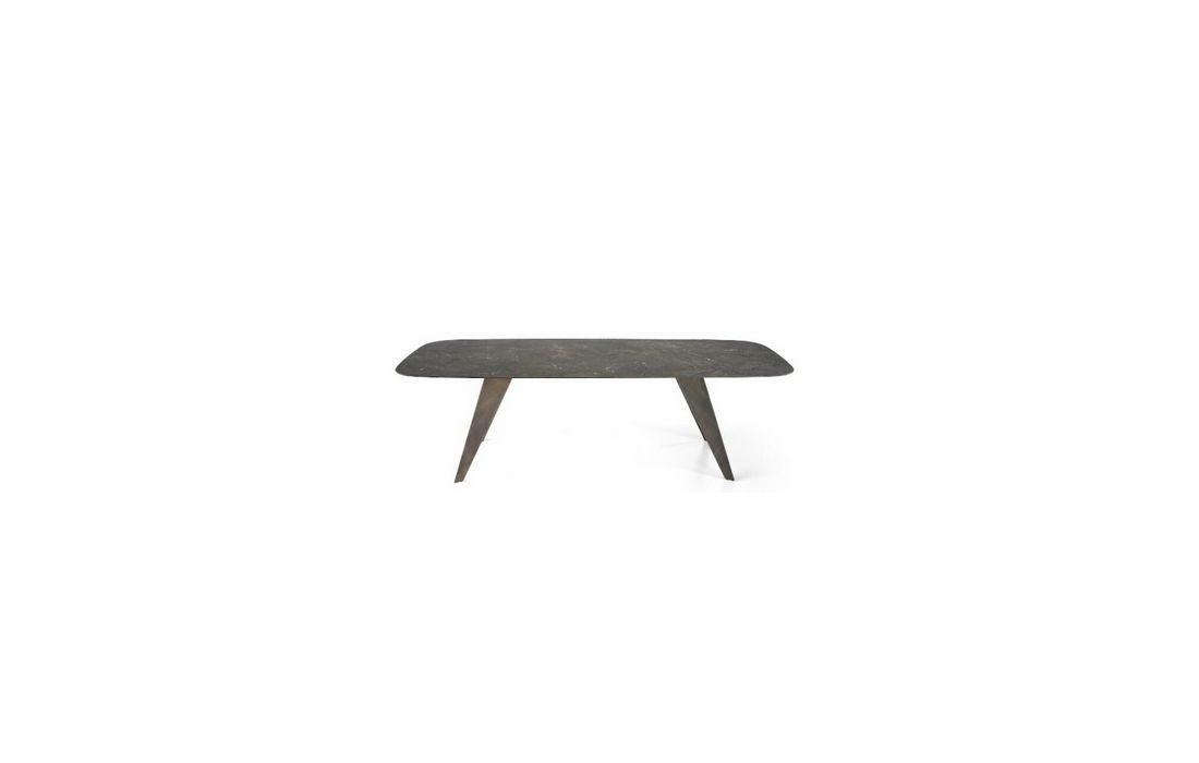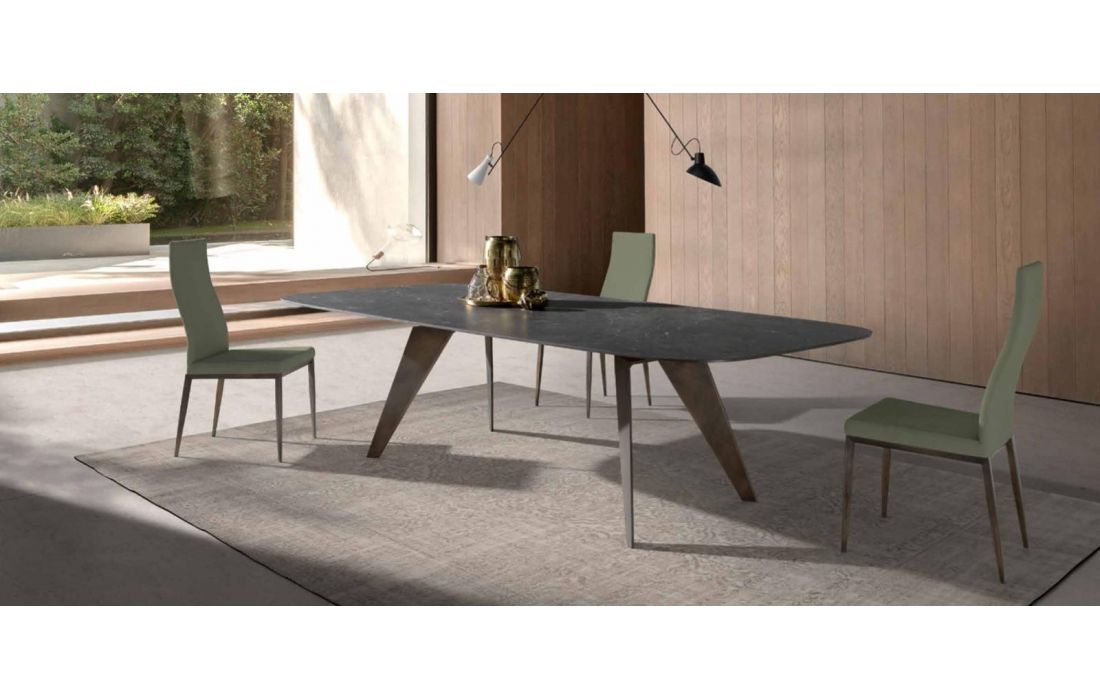 Mesa de jantar com tampo de cerâmica e pés em metal