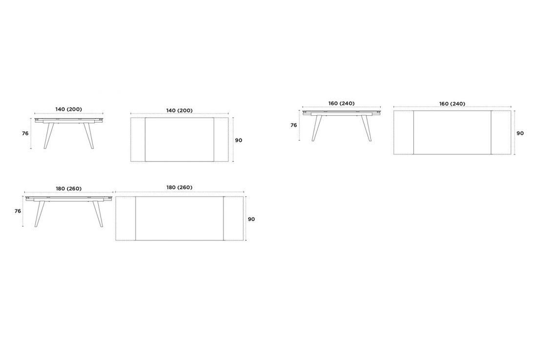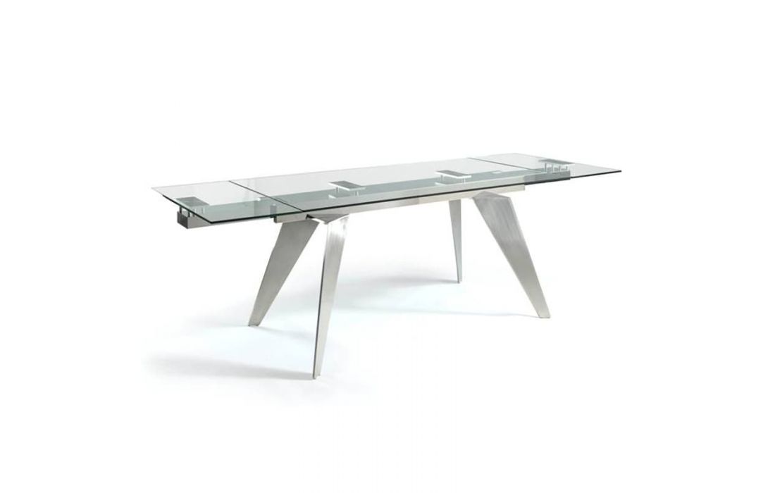 Mesa de jantar extensível com tampo de cerâmica ou vidro e pés em metal