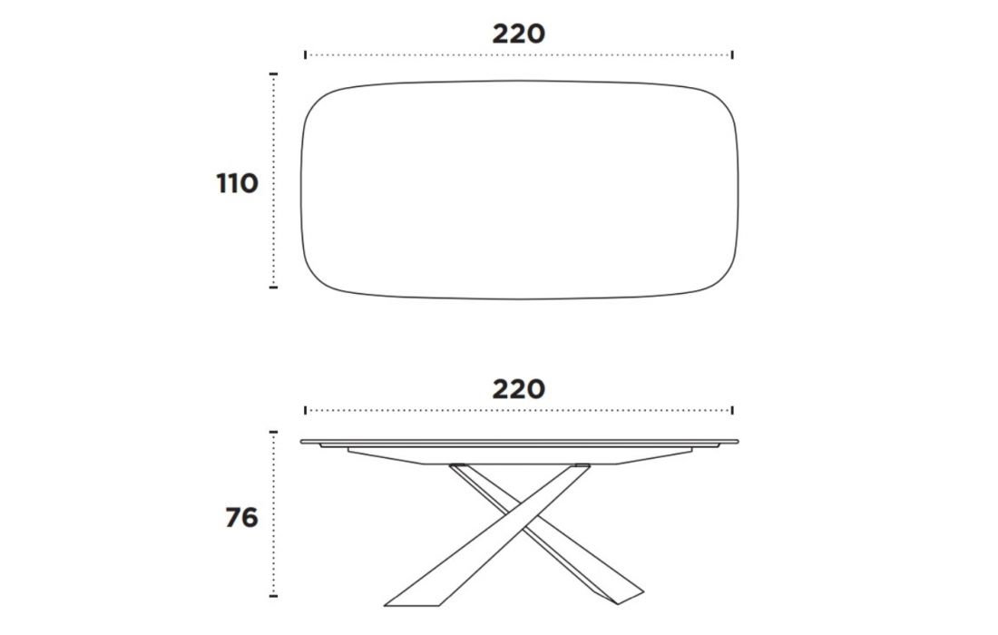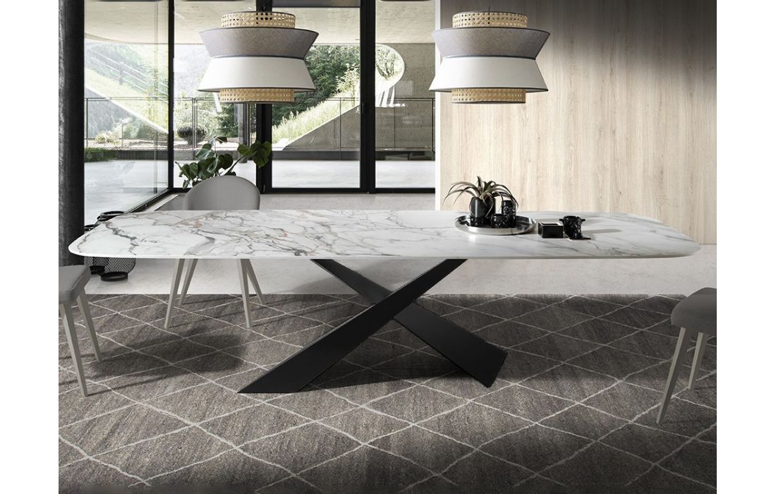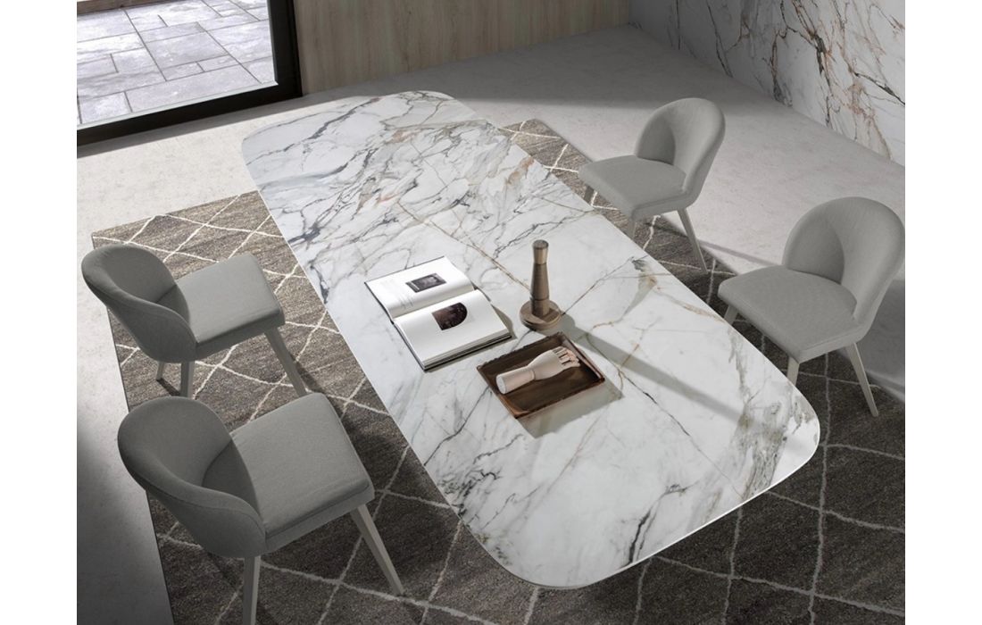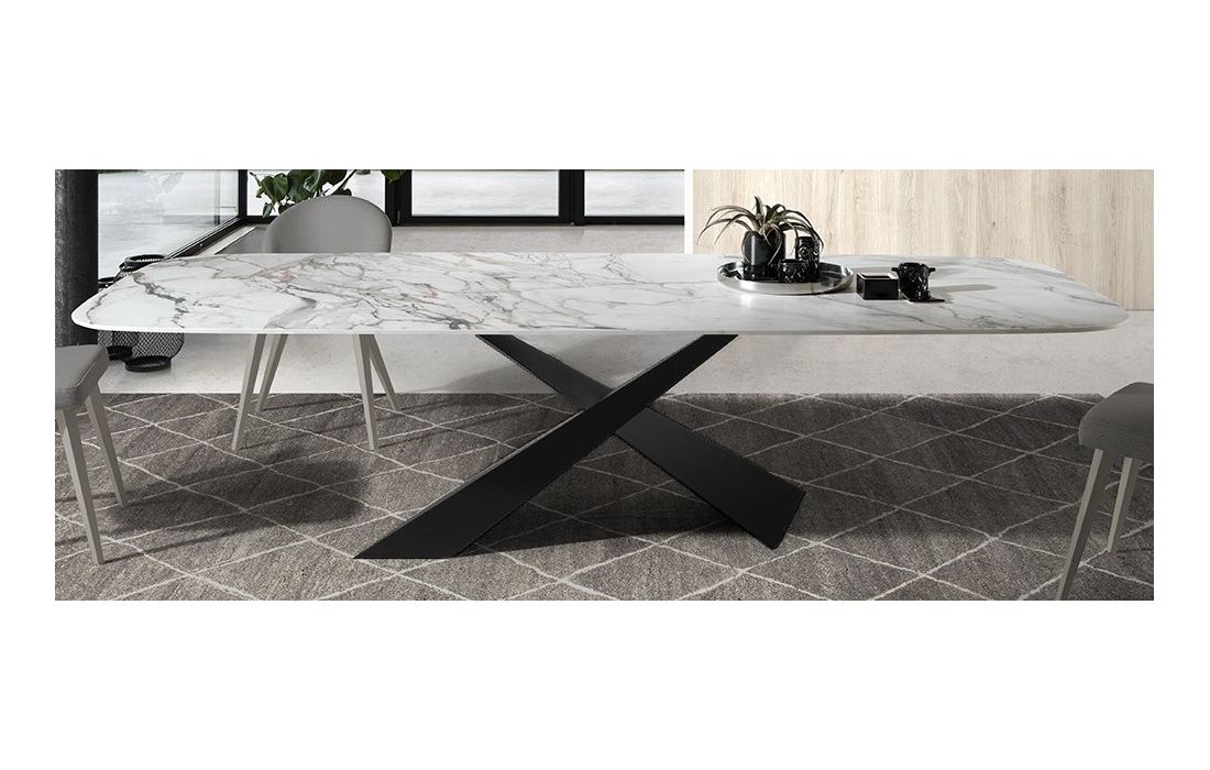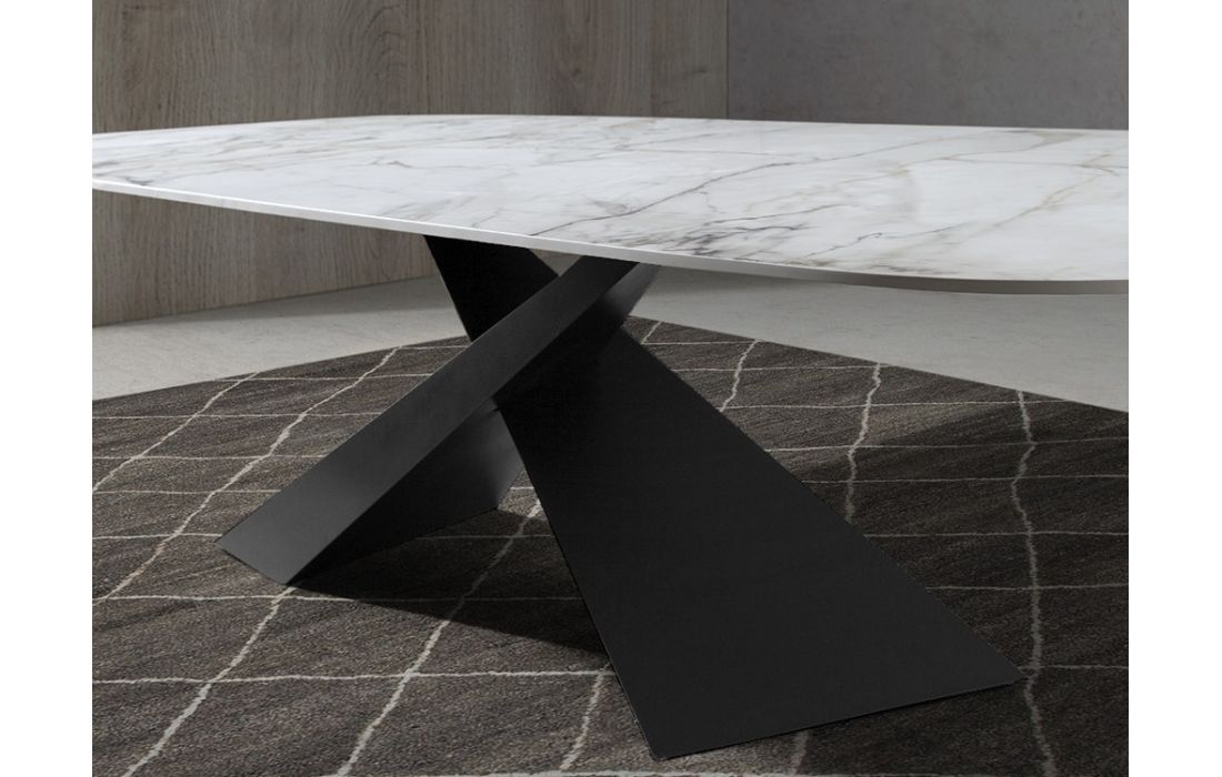 Mesa de jantar com tampo de cerâmica e pés em metal