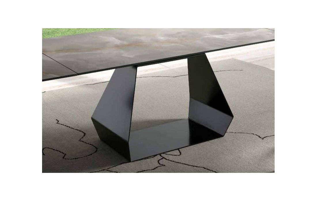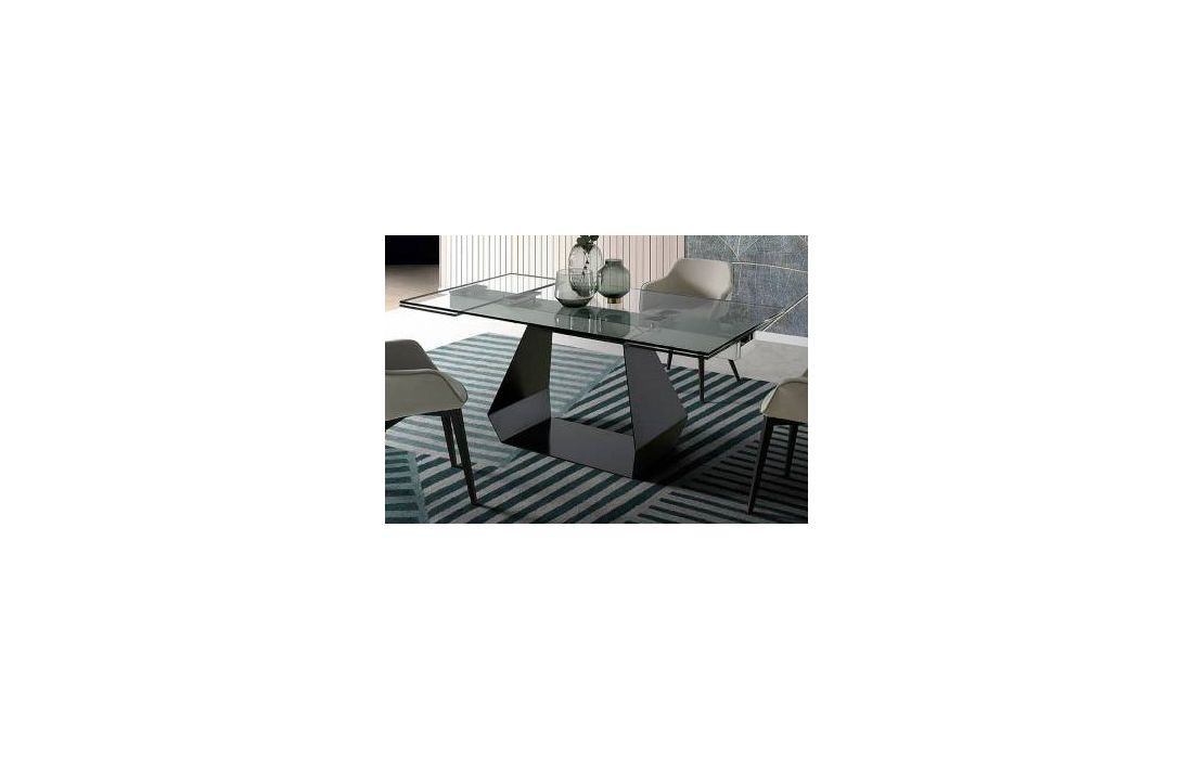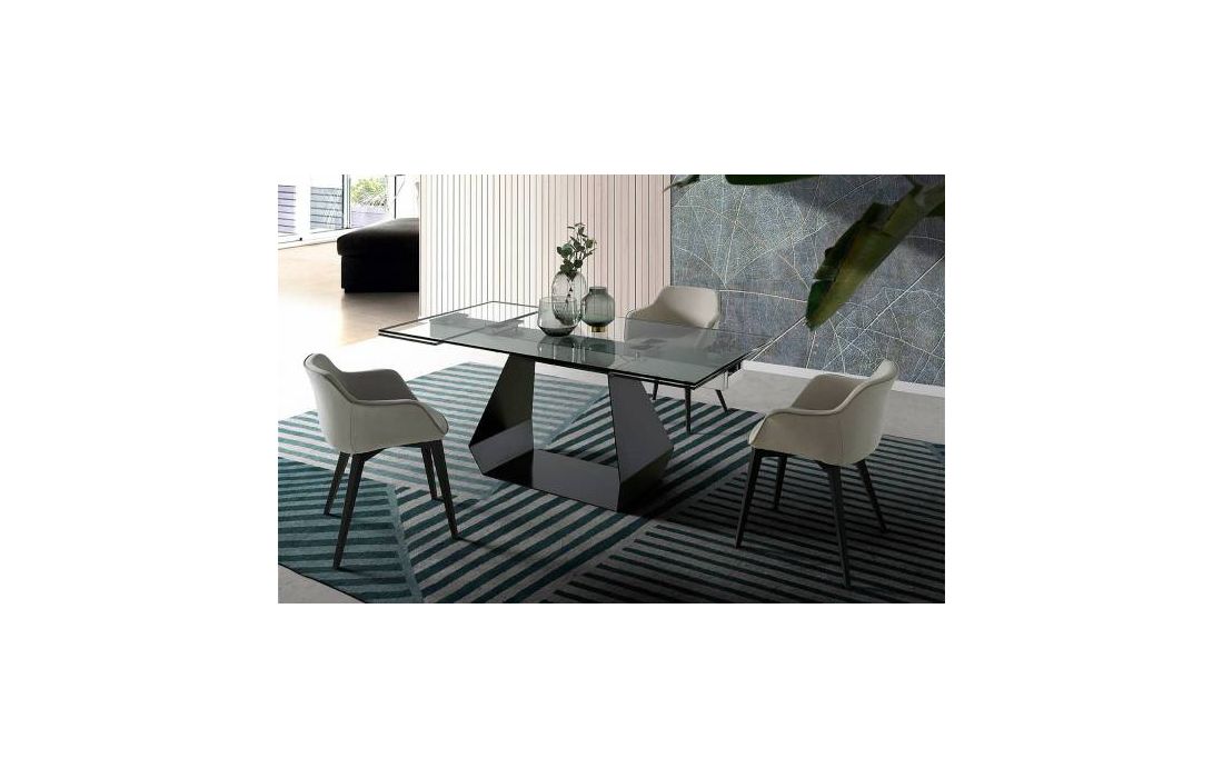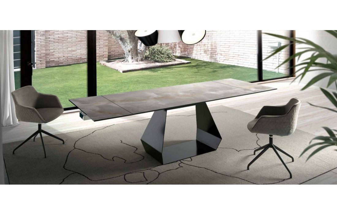 Mesa de jantar extensível com tampo de cerâmica ou vidro e pés em metal