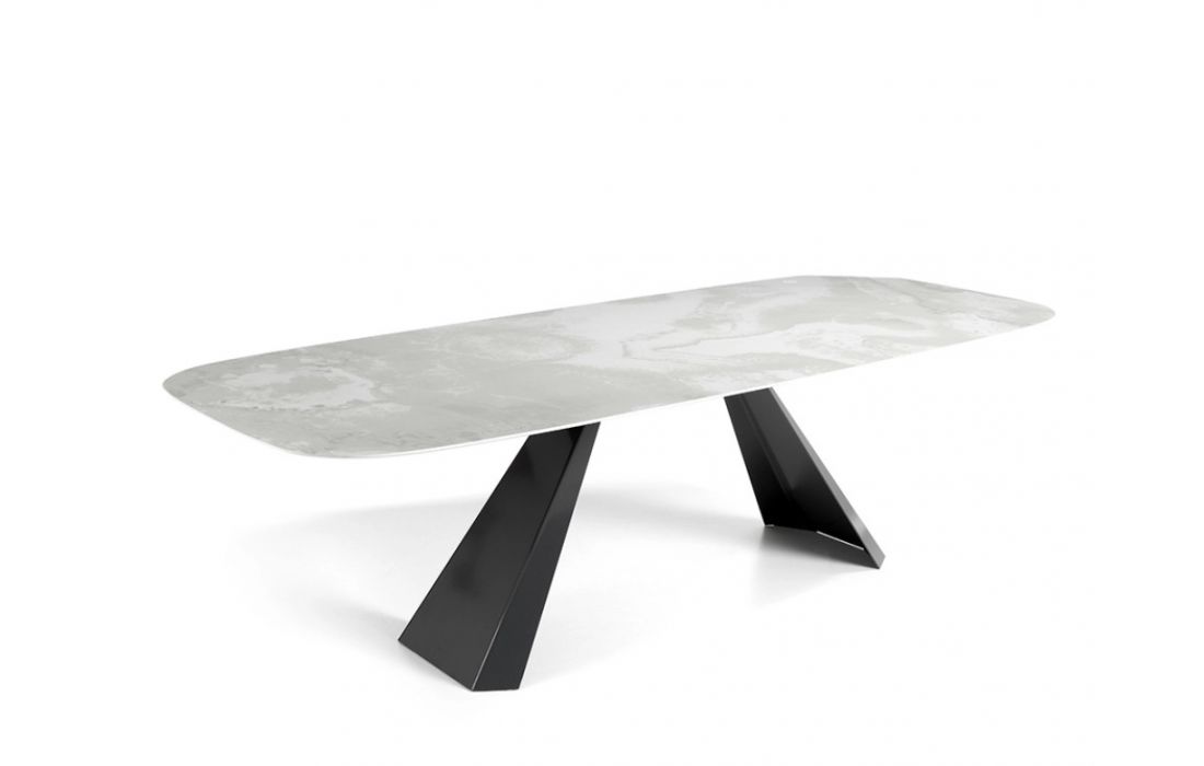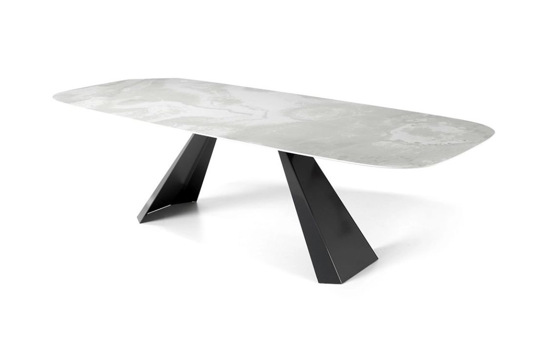 Mesa de jantar com tampo de cerâmica e pés em metal