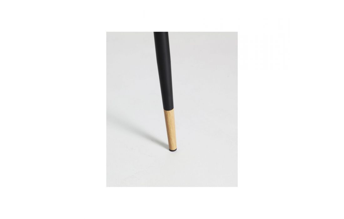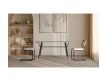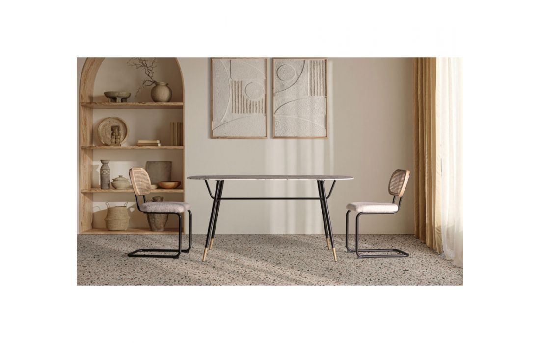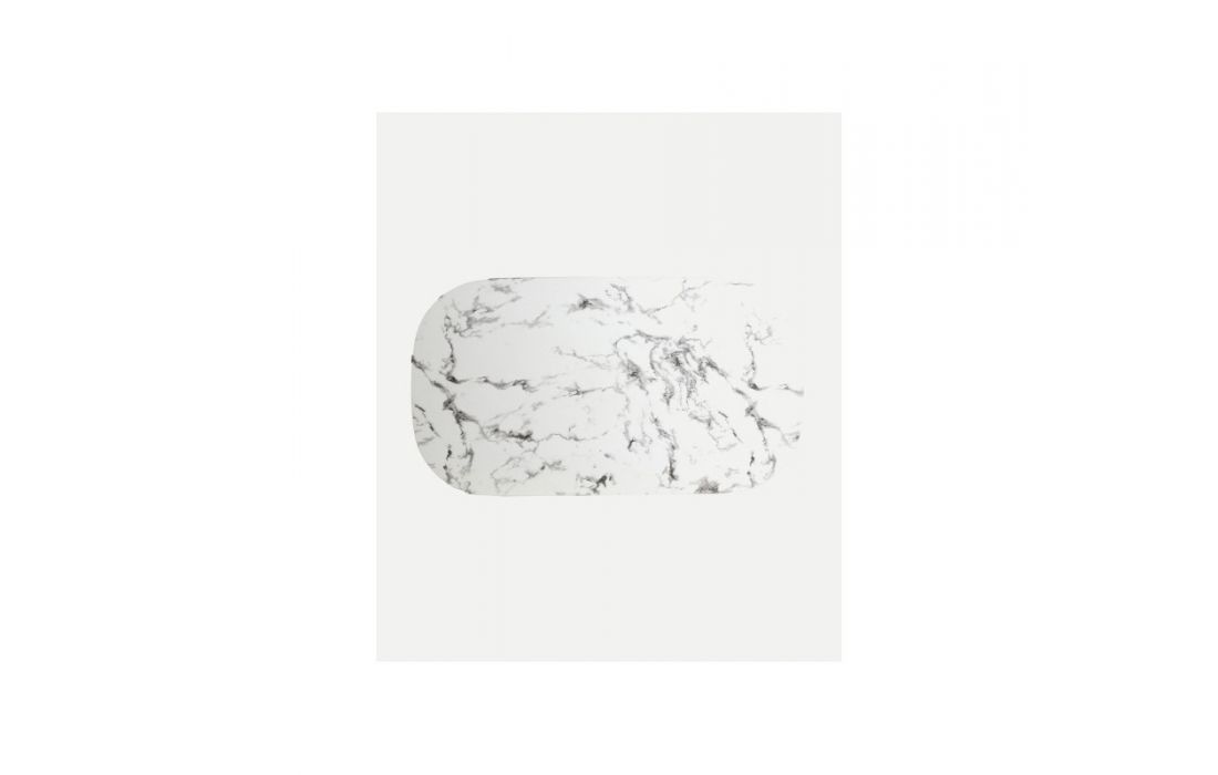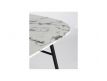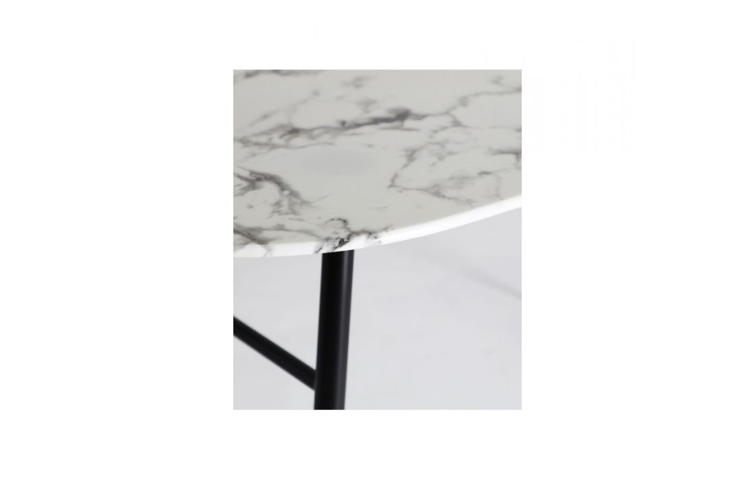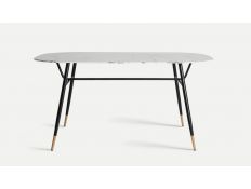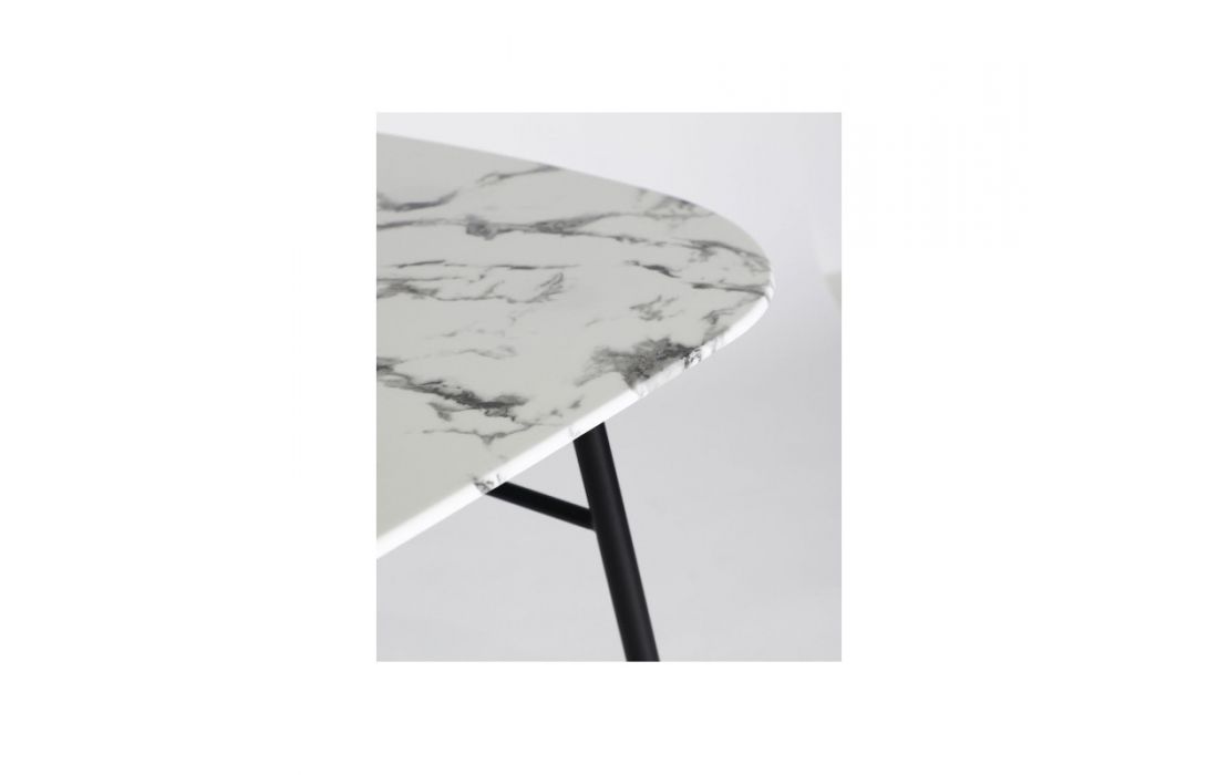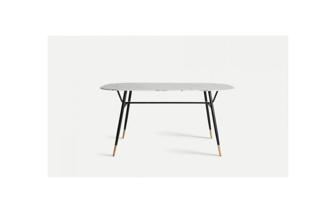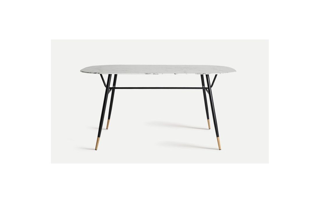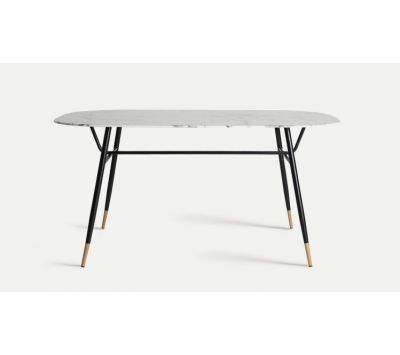 Mesa de jantar com superfície em mármore branco e pernas de metal preta