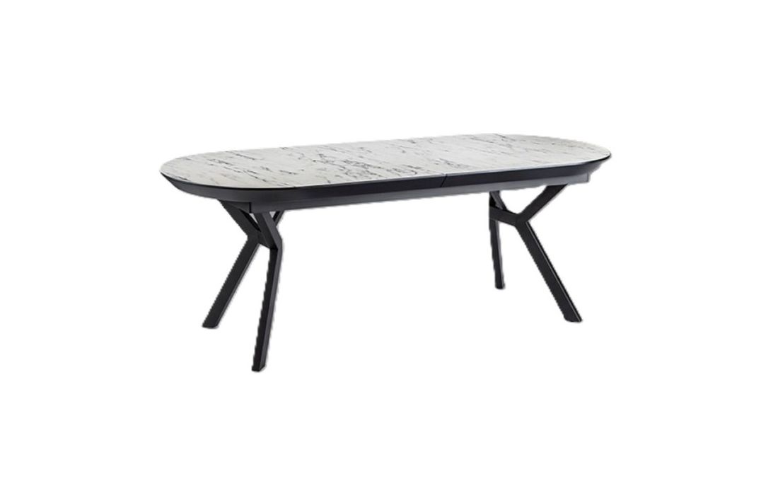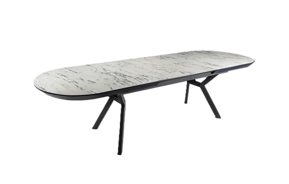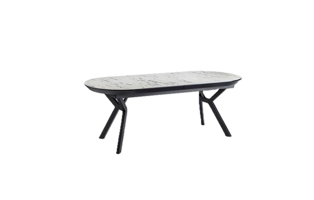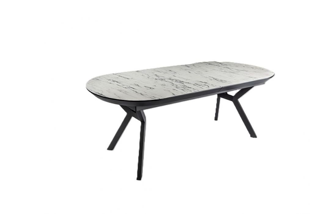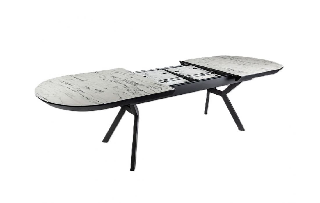 Mesa de jantar extensível com pés em metal e tampo em MDF com superfície de melamina e acabamento em mármoreDestinatário :