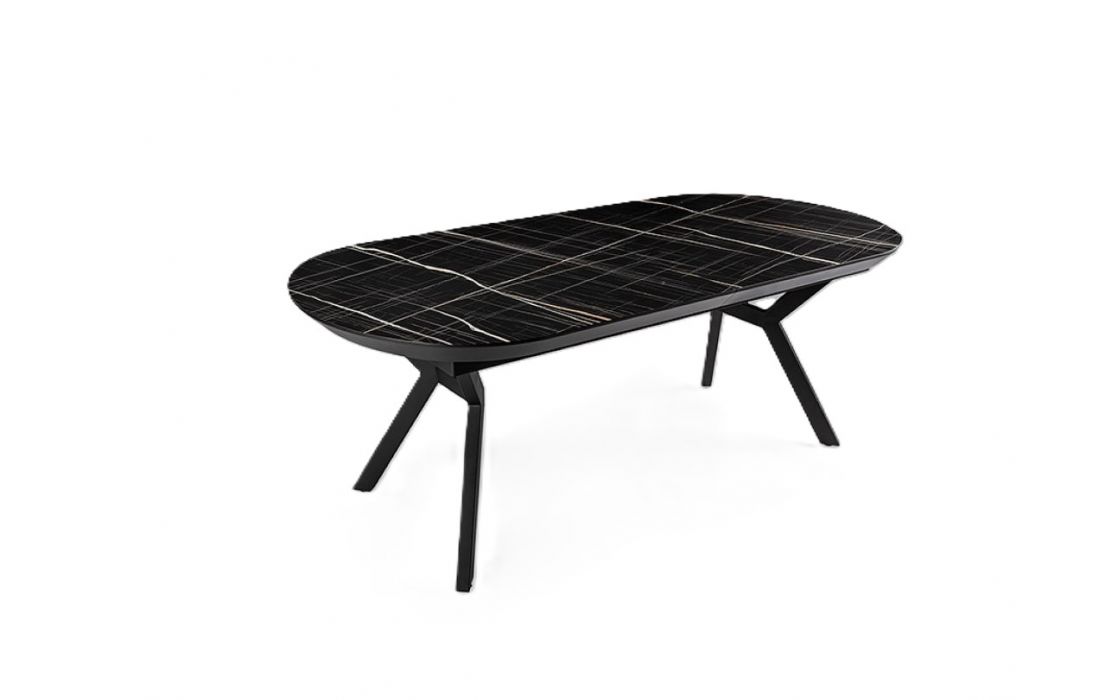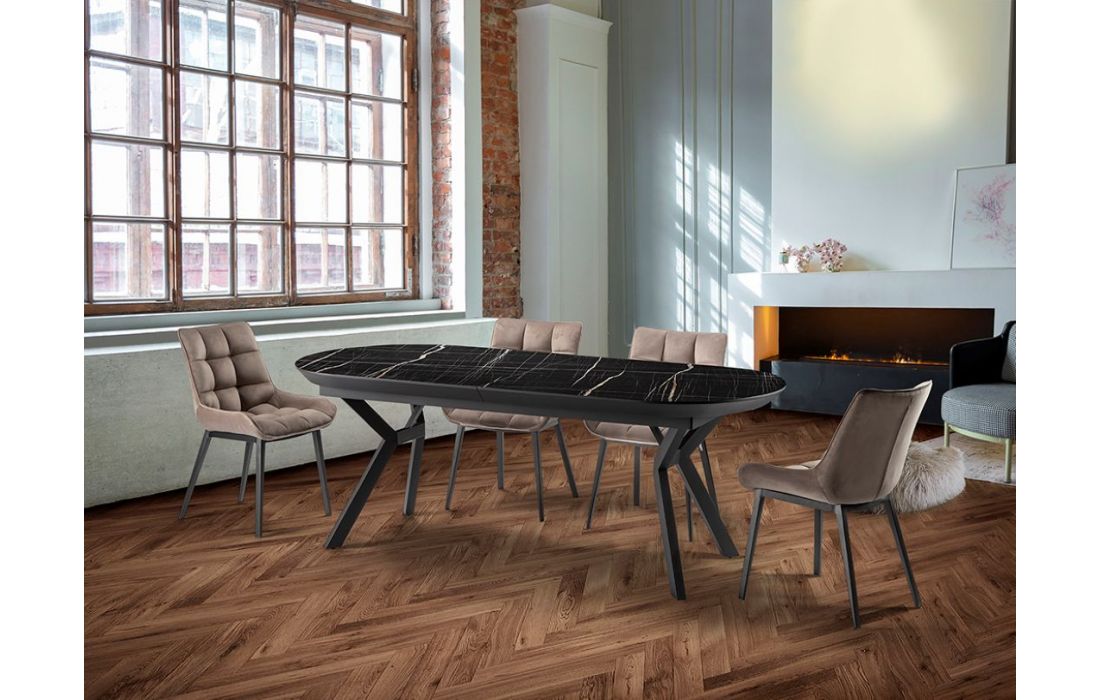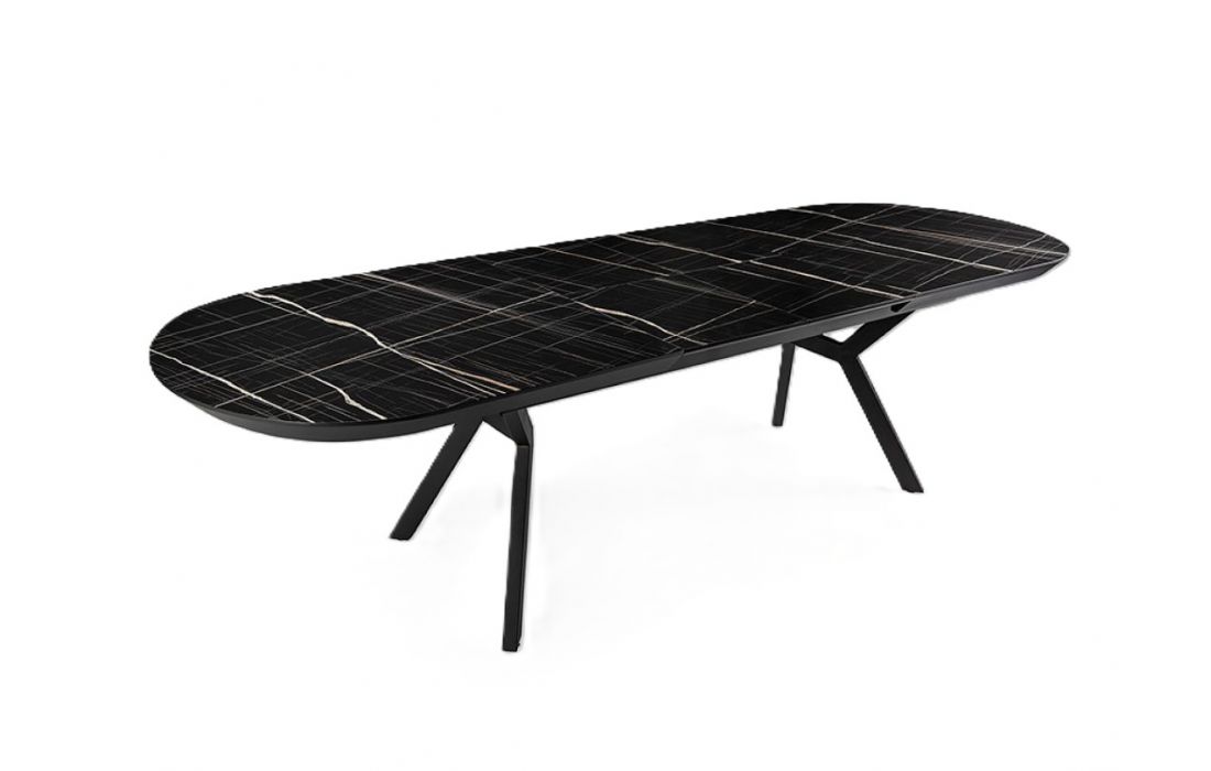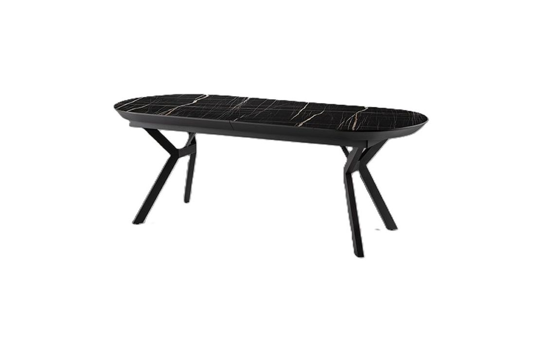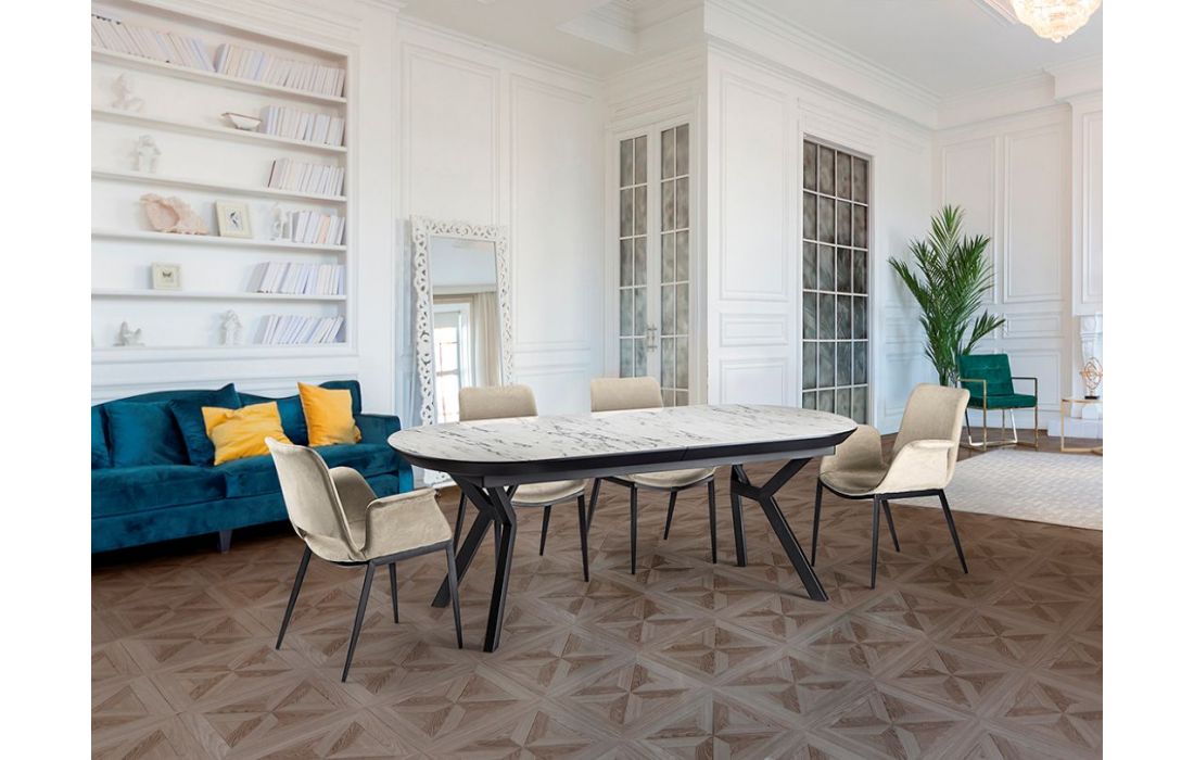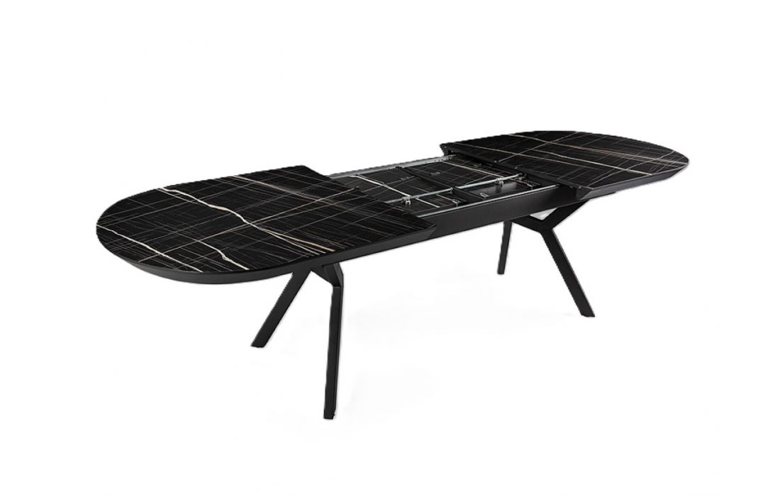 Mesa de jantar extensível com pés em metal e tampo em MDF com superfície de melamina e acabamento em mármoreDestinatário :