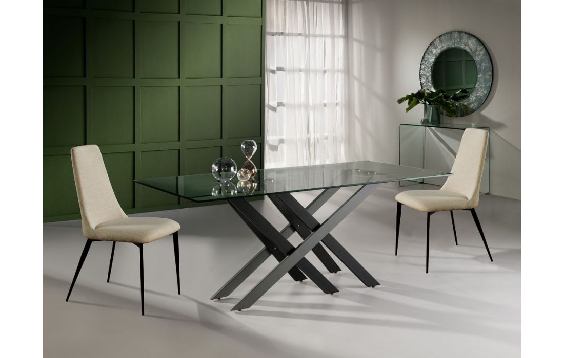 Mesa de jantar extensível com pés em metal e tampo em vidroDestinatário :