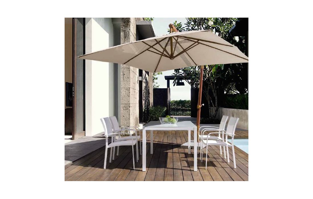 Mesa fixa com estrutura em vime sintético branco e tampo de vidro cinza, retangular ou quadrada.Dimensões em cm C 90 P 90 A 76(quadrada)C 150 P 90 A 76(retangular)Prazo de Entrega30 a 40 dias