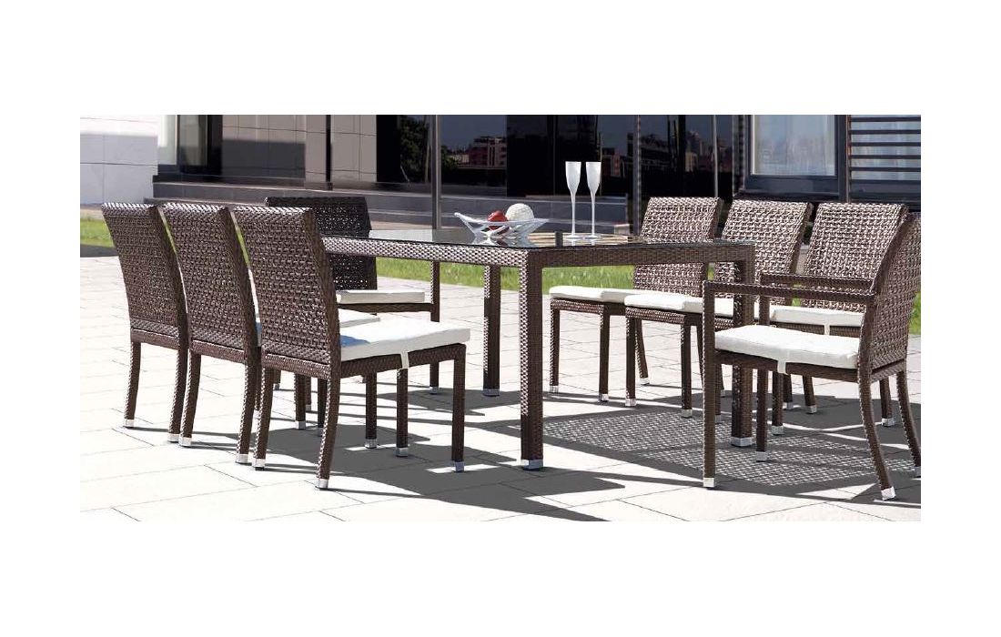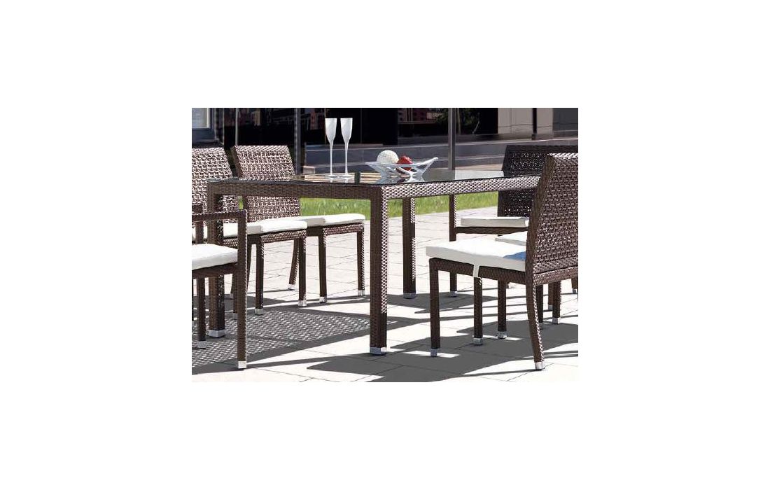 Mesa fixa com estrutura em vime sintético castanho escuro e tampo de vidro translúcido, retangular ou quadrada.Dimensões em cm C 90 P 90 A 76(quadrada)C 150 P 90 A 76(retangular)Prazo de Entrega30 a 40 dias