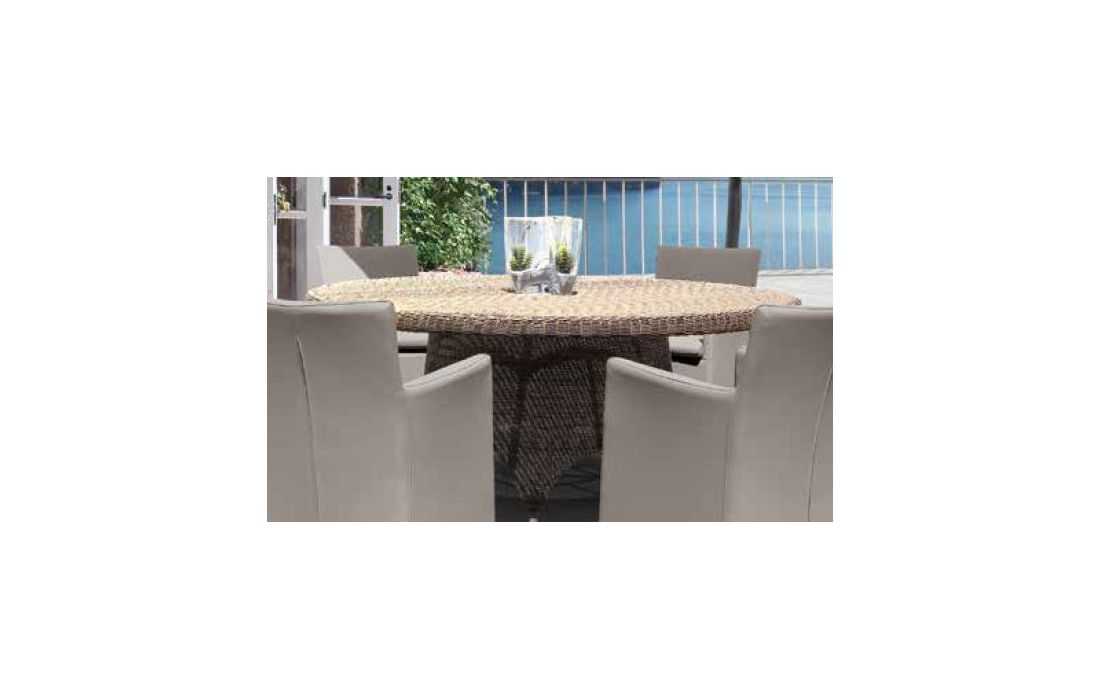 Mesa fixa com estrutura em vime sintético castanho escuro e tampo de vidro translúcido, retangular ou quadrada.Dimensões em cm C 90 P 90 A 76(quadrada)C 150 P 90 A 76(retangular)Prazo de Entrega30 a 40 dias
