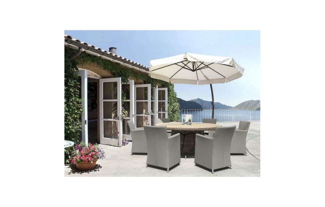 Mesa fixa com estrutura em vime sintético branco e tampo de vidro cinza, retangular ou quadrada.Dimensões em cm C 90 P 90 A 76(quadrada)C 150 P 90 A 76(retangular)Prazo de Entrega30 a 40 dias