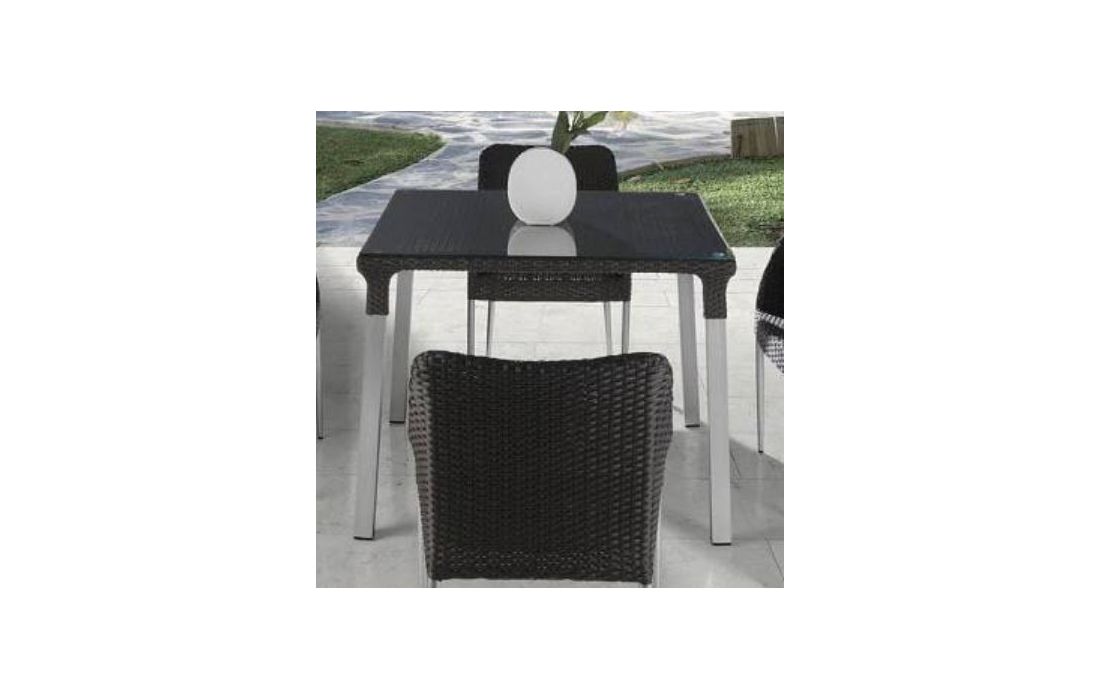 Mesa em rattan coffee com tampo em vidro, para uso exterior.