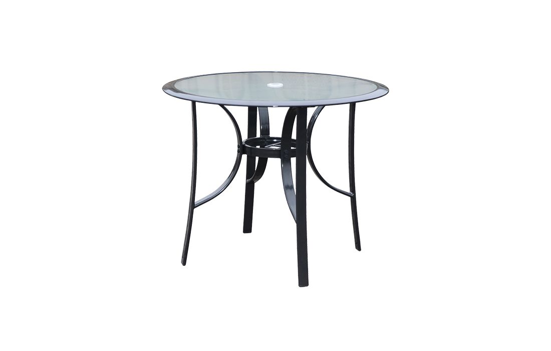 Mesa redonda com estrutura em alumínio cinzento antracite e tampo de vidro translúcido.Destinatário :