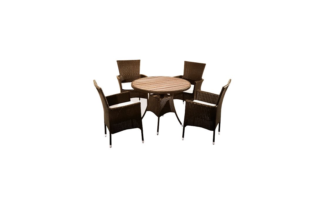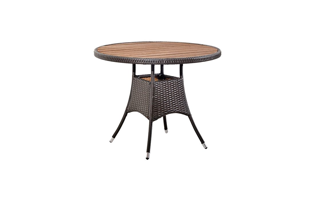 Mesa redonda com estrutura em vime sintético castanho e tampo de madeira sintética cor tekaDestinatário :
