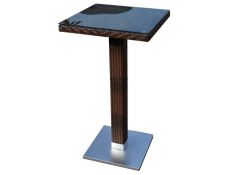 Mesa alta com estrutura e base em alumínio, revestido em vime castanho ou branco com tampo quadrado em vidro.Dimensões em cmC 60 P 60 A 110Prazo de Entrega15 a 20 dias