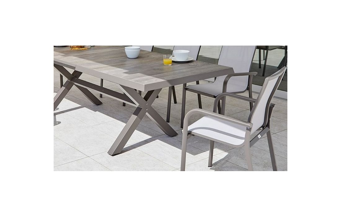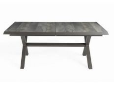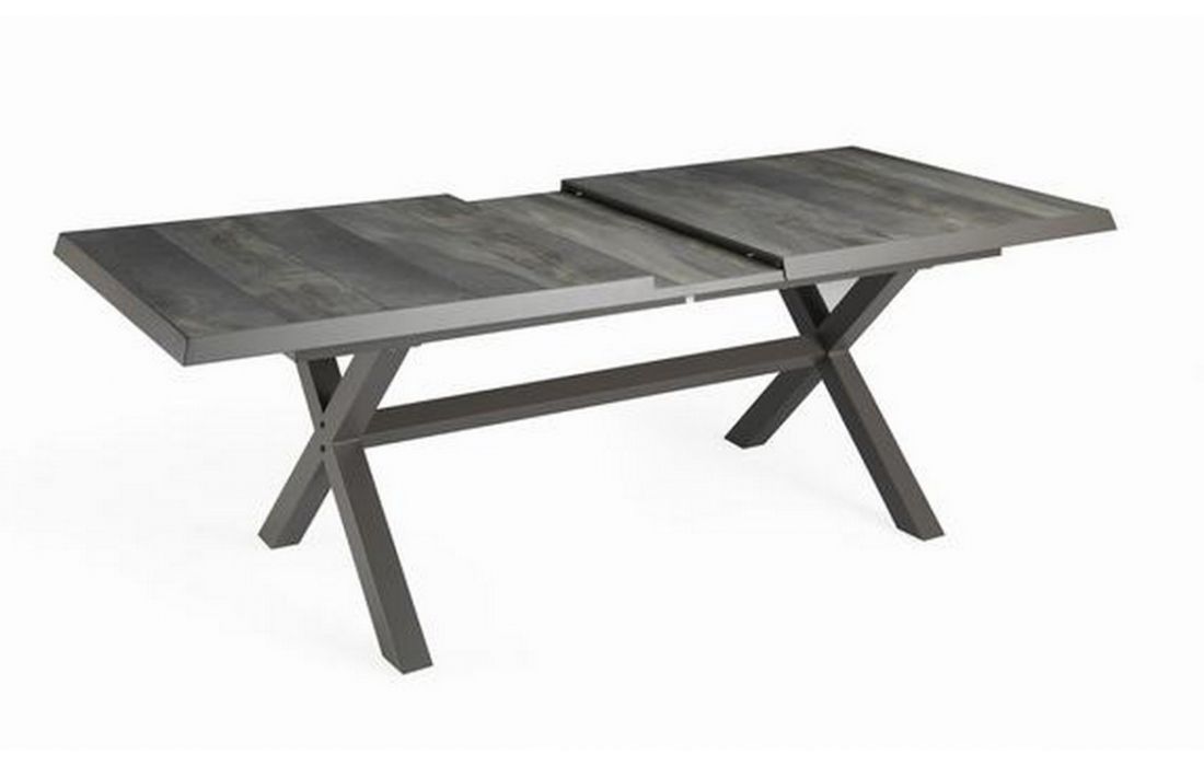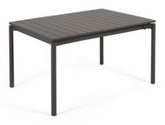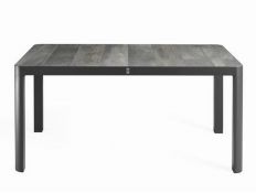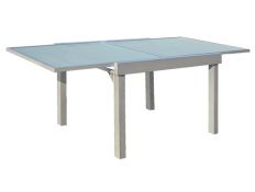 Mesa extensível com estrutura em alumínio cinzento antracite e tampo de vidro translúcido, quadrada ou retangular.Dimensões em cm C 90/180 P 90 A 77(quadrada)C 135/270 P 90 A 77(retangular)Prazo de Entrega30 a 40 dias