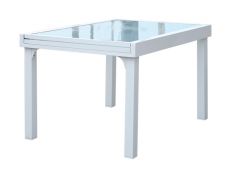 Mesa extensível com estrutura em alumínio branco e tampo de vidro translúcido, quadrada ou retangular.Dimensões em cm C 90/180 P 90 A 77(quadrada)C 135/270 P 90 A 77(retangular)Prazo de Entrega30 a 40 dias