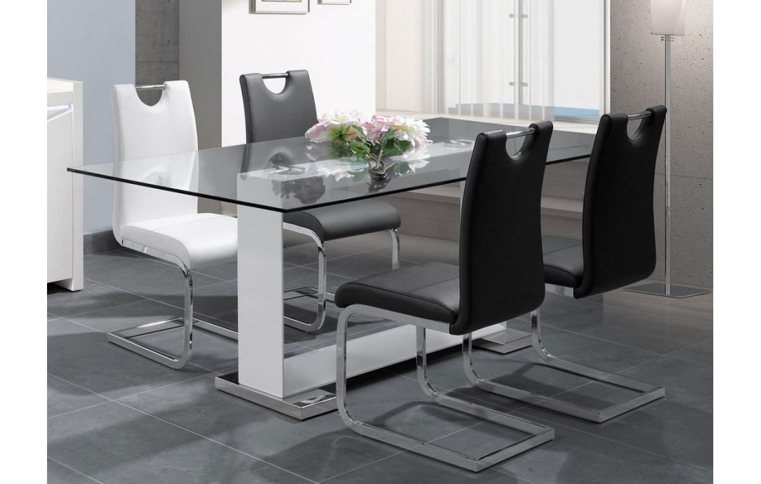 | 700DT-309B | 1 | Mesa de jantar c/ base em metal, tampo de vidro e pé lacado branco ou preto | C 200 P 100 A 75 | 730,00 € | ||||