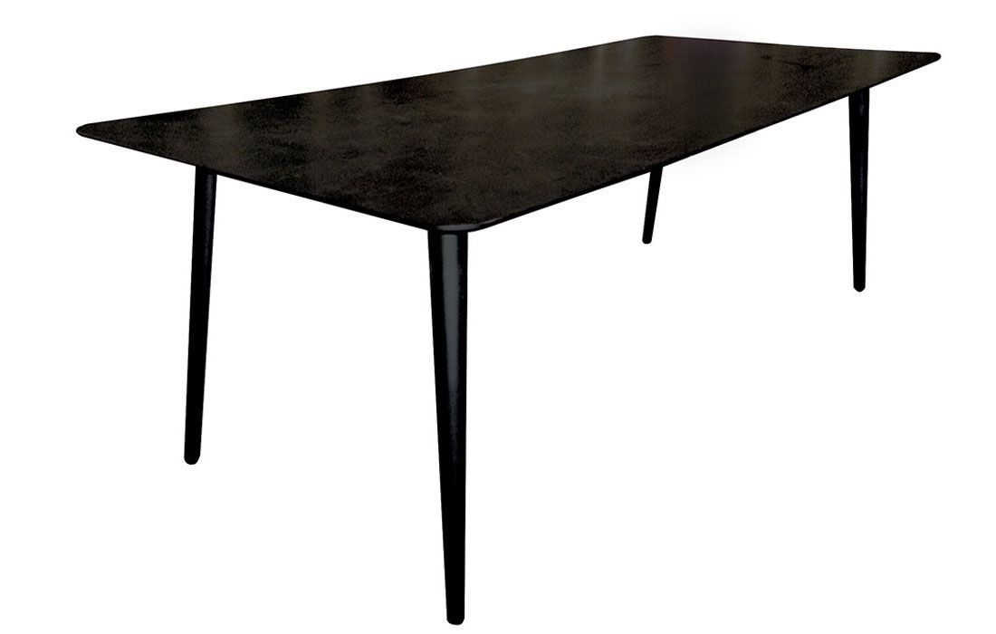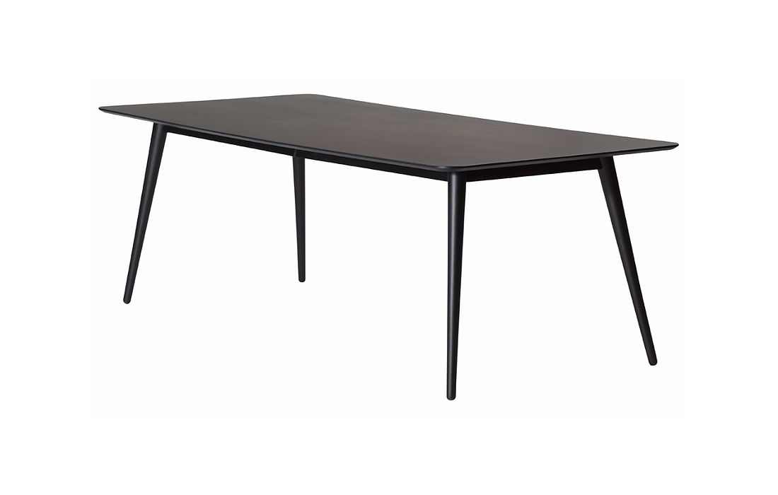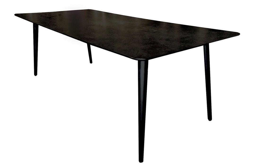 Mesa de jantar retangular em folha de madeira manchada de preto