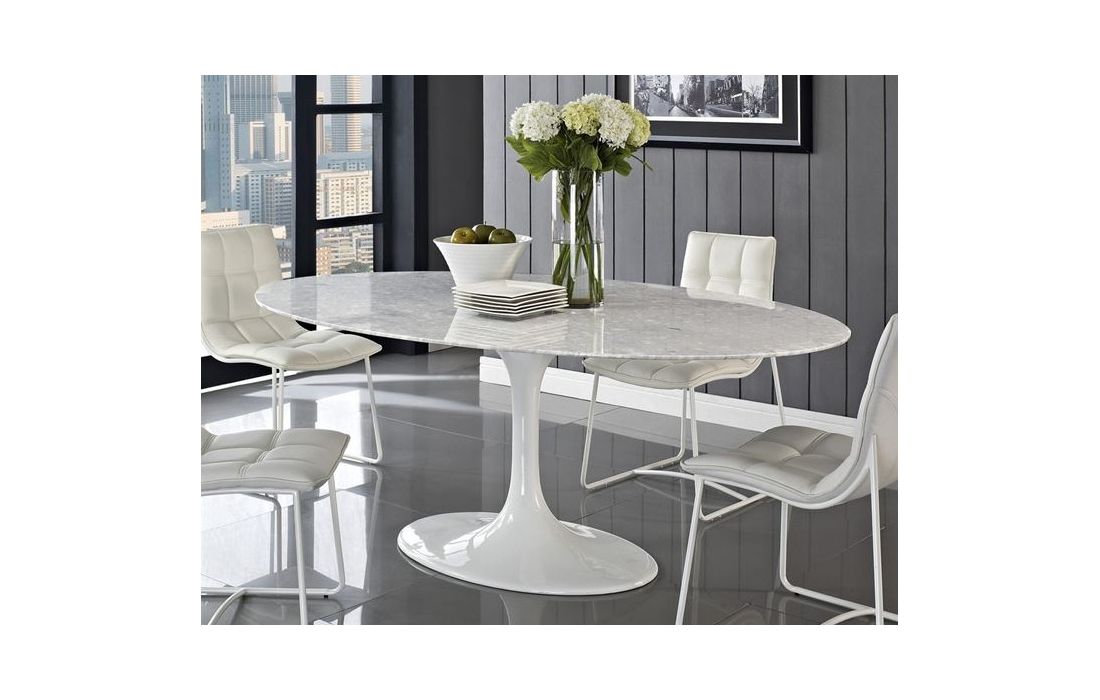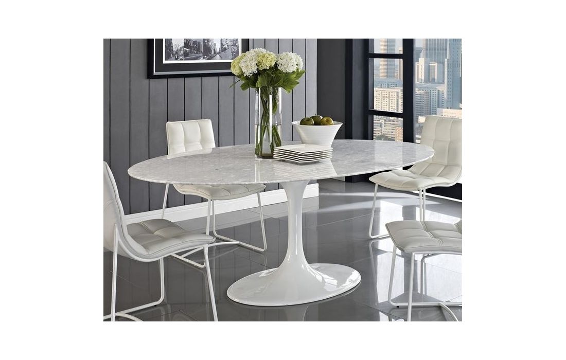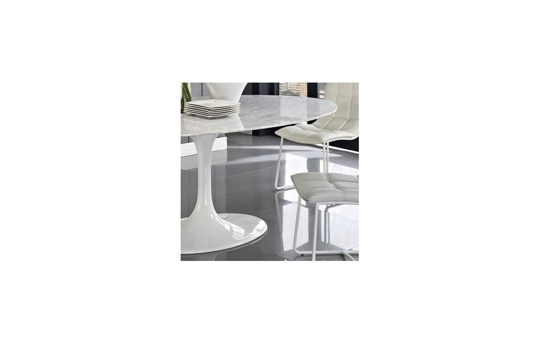 Mesa de jantar oval em fibra de vidro com tampo de marmore branco