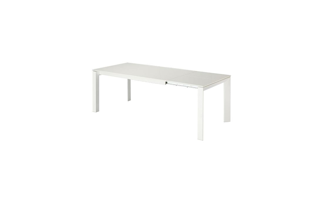 Mesa extensível com tampo lacado branco mate e estrutura em metal pintado de branco alto brilho