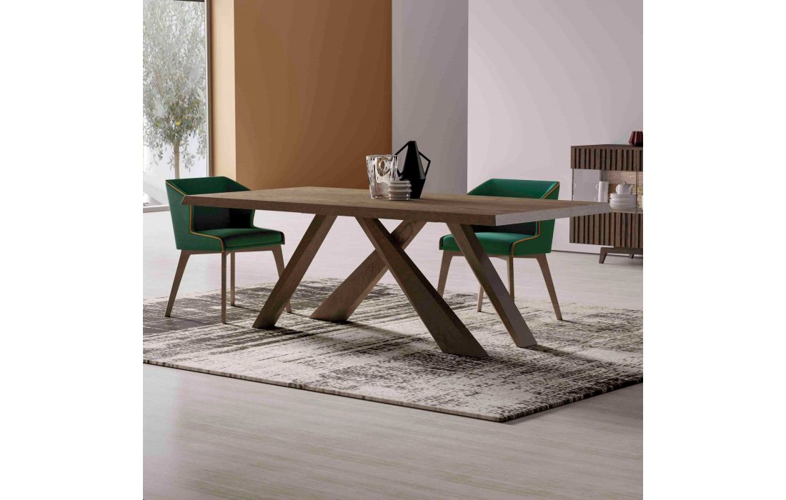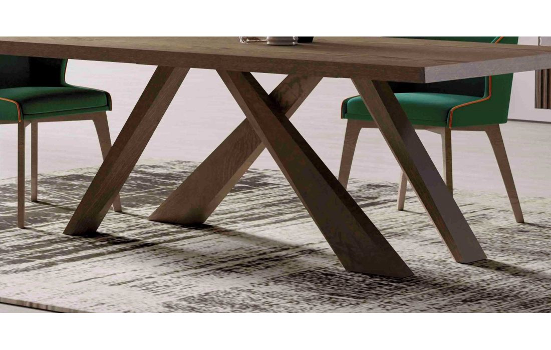 Mesa de jantar fixa feita em mdf e folha de madeira.