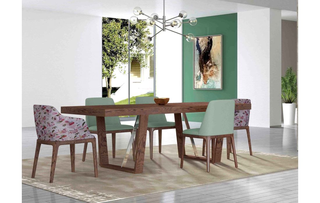 Mesa de jantar fixa feita em mdf e folha de madeira.