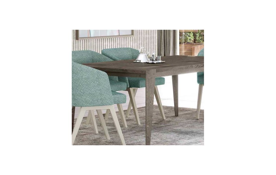 Mesa de jantar fixa feita em mdf e folha de madeira.