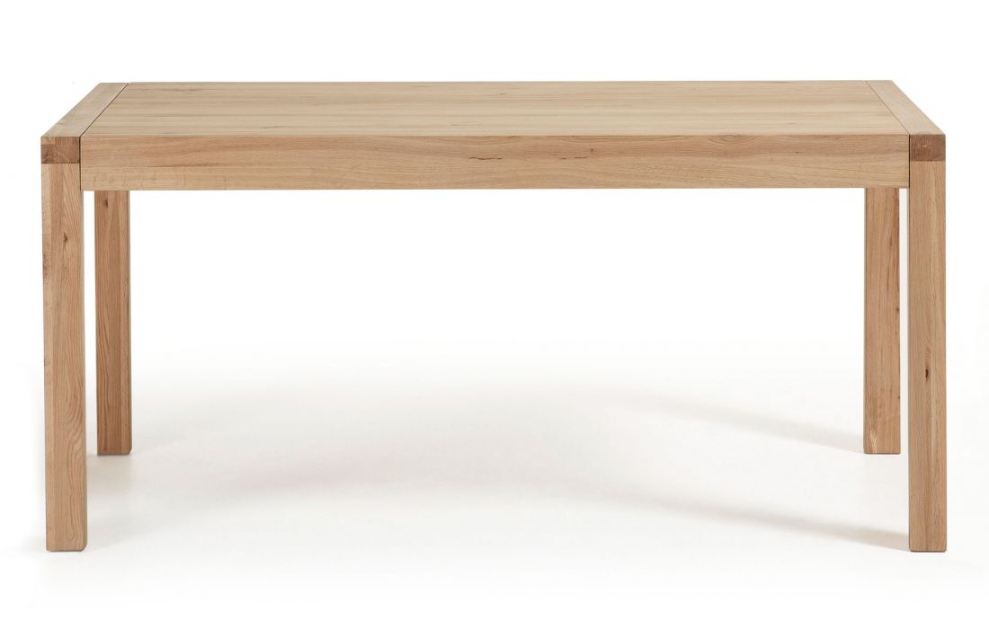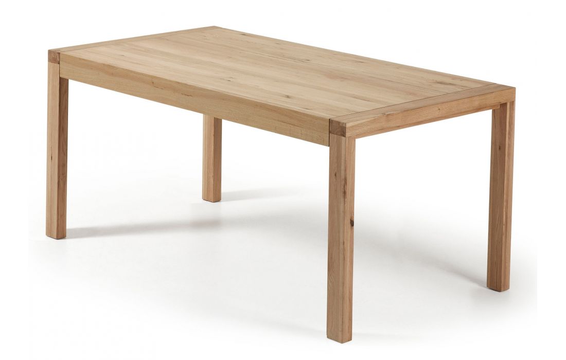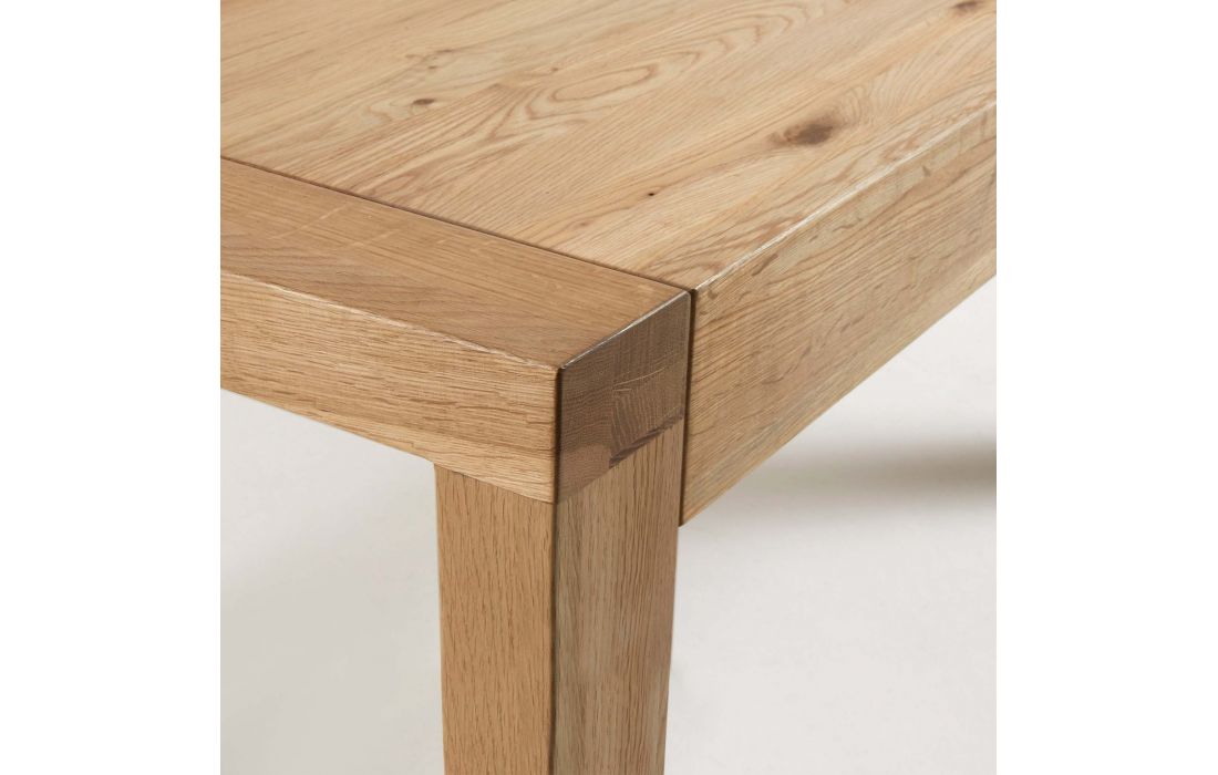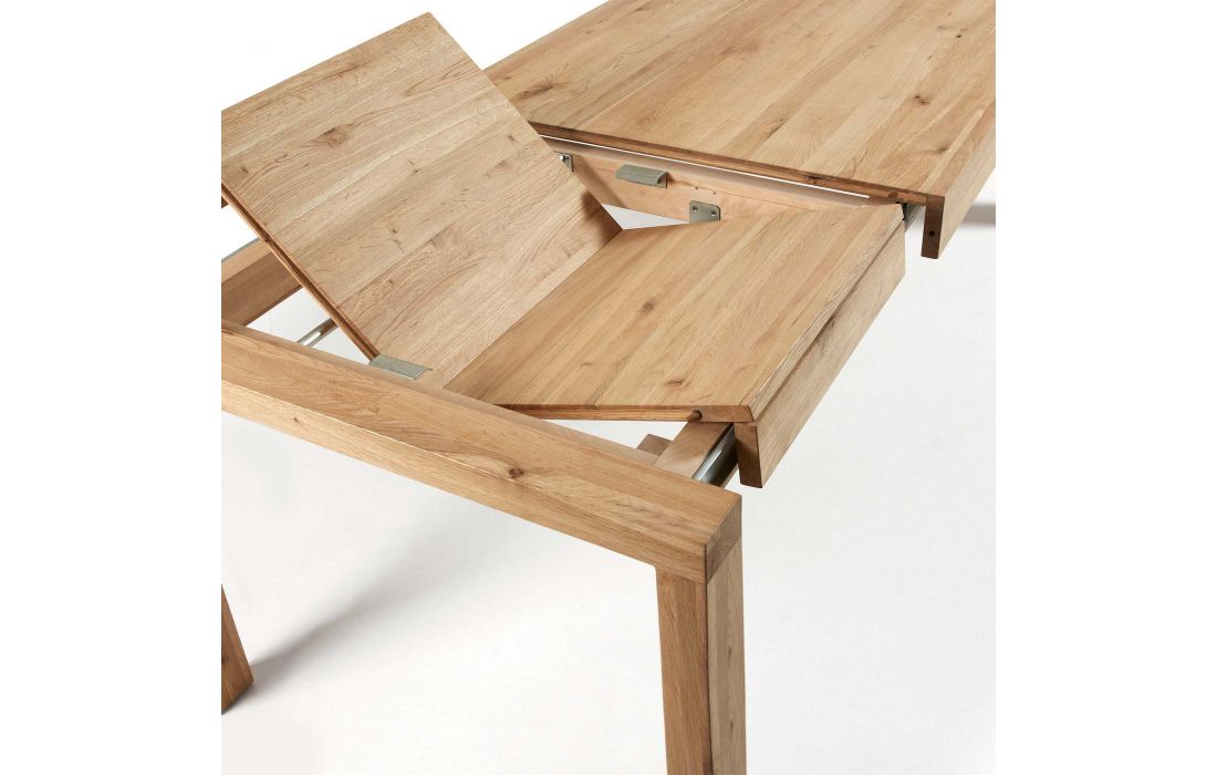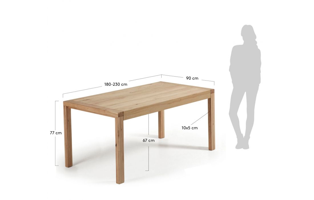 Mesa de jantar extensível em madeira de carvalho com acabamento natural. Disponivel com duas medidas de 180 (230) com uma extensão de 50 cm ou de 200 (280) com uma extensão de 80 cm.
