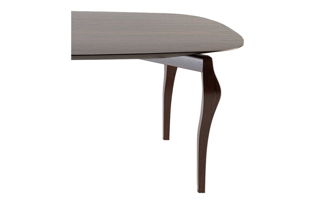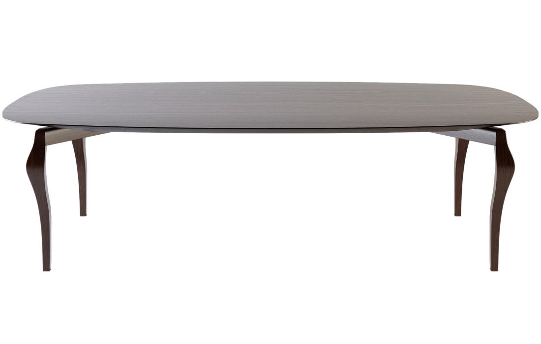 Mesa de jantar fixa oval com tampo e estrutura de madeira