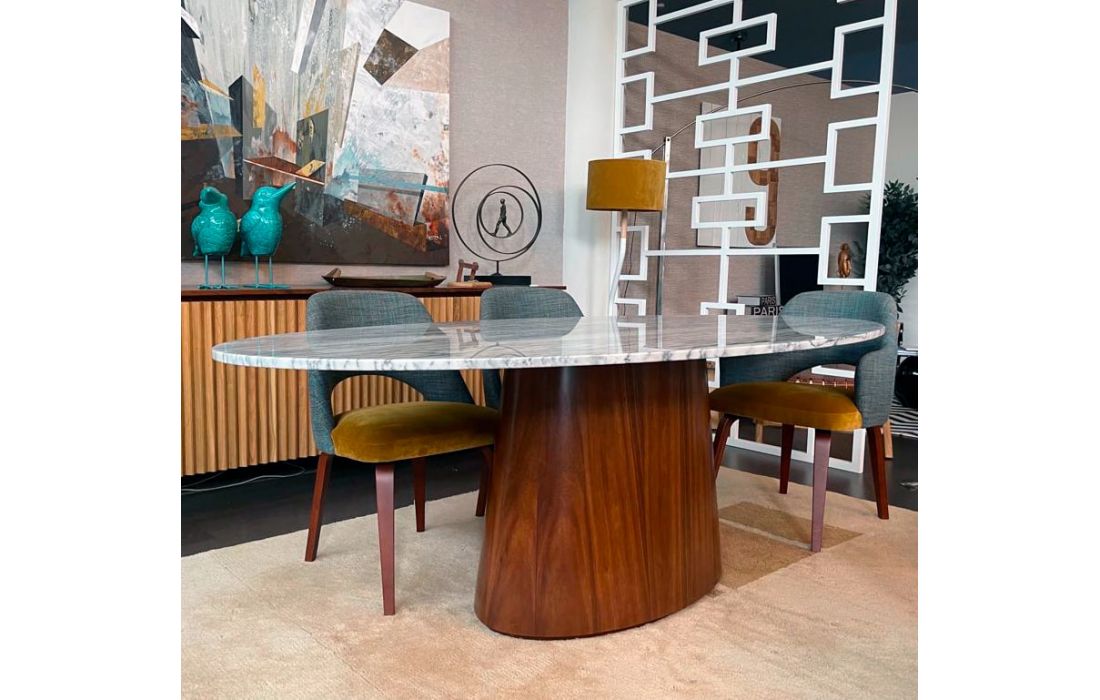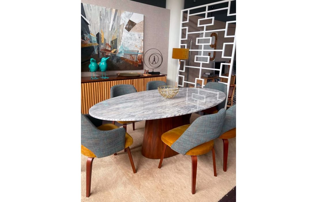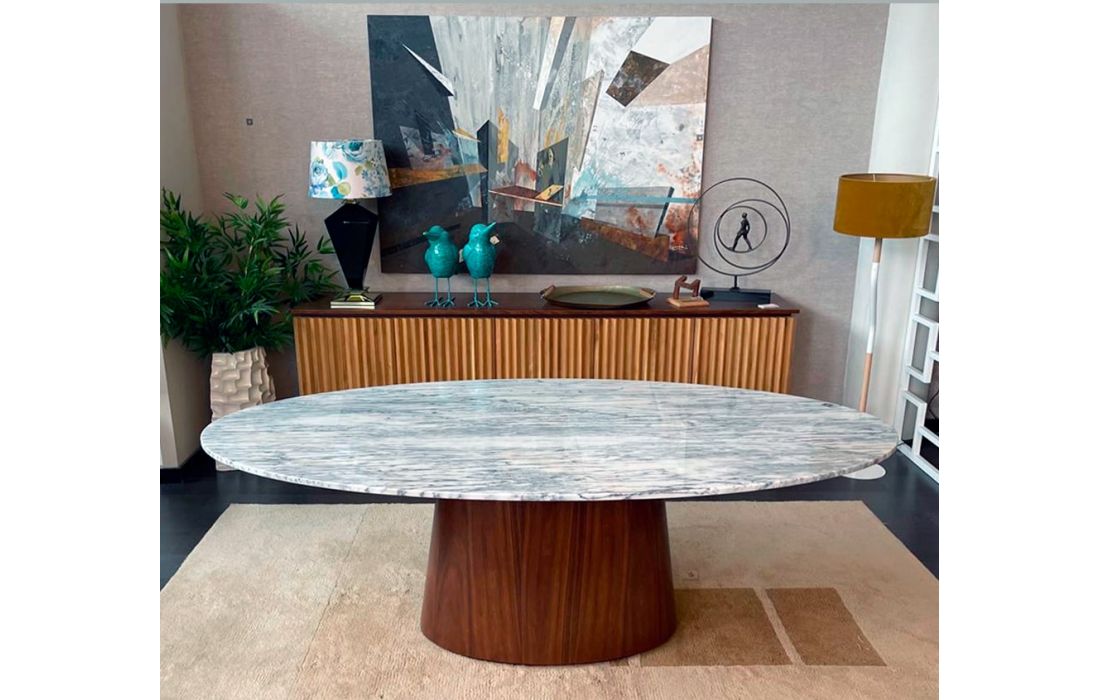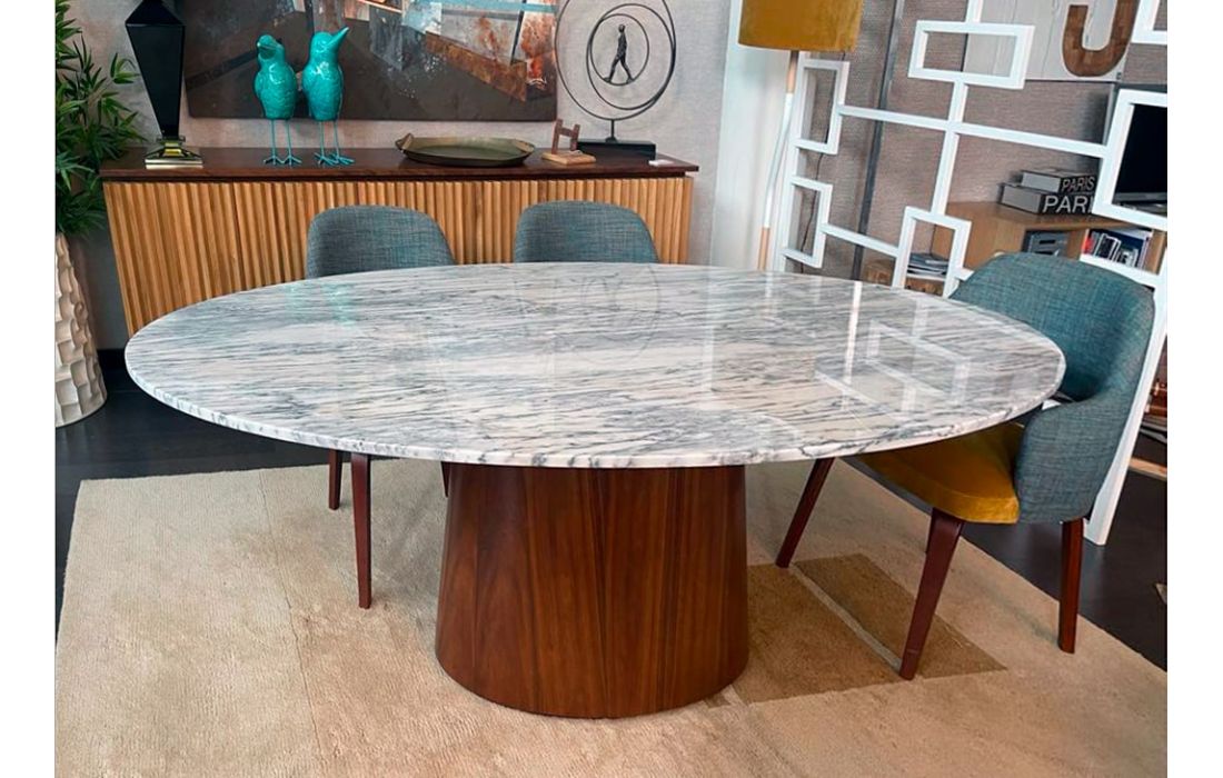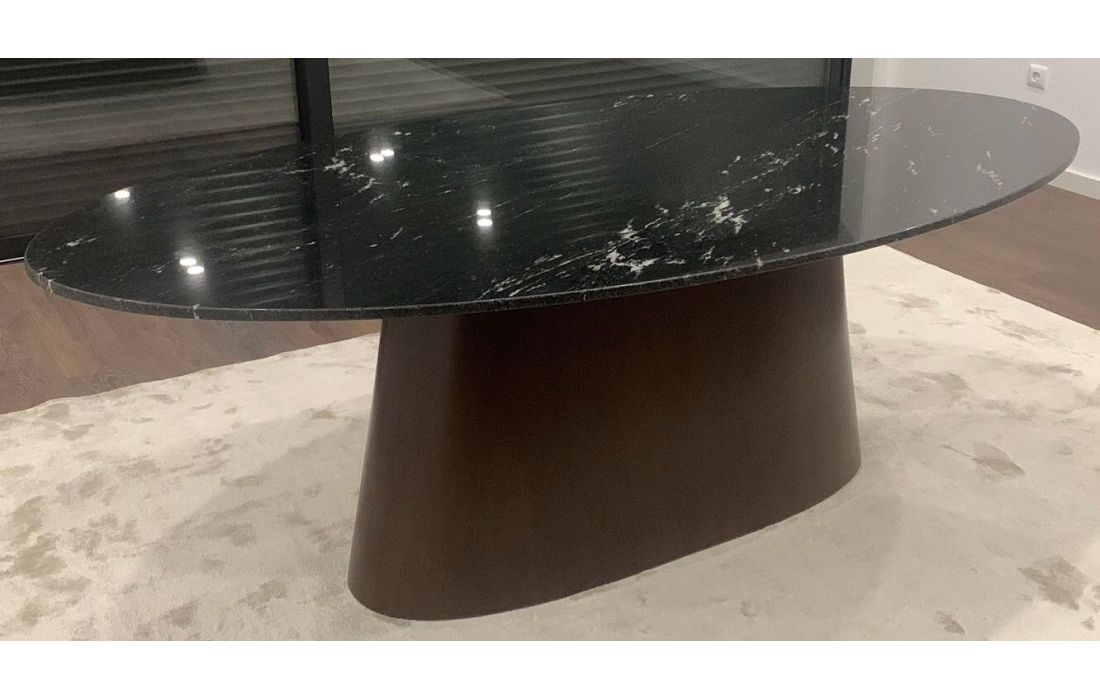 Acabamento igual à imagem: Base em nogueira e tampo em mármore estremoz pele tigre