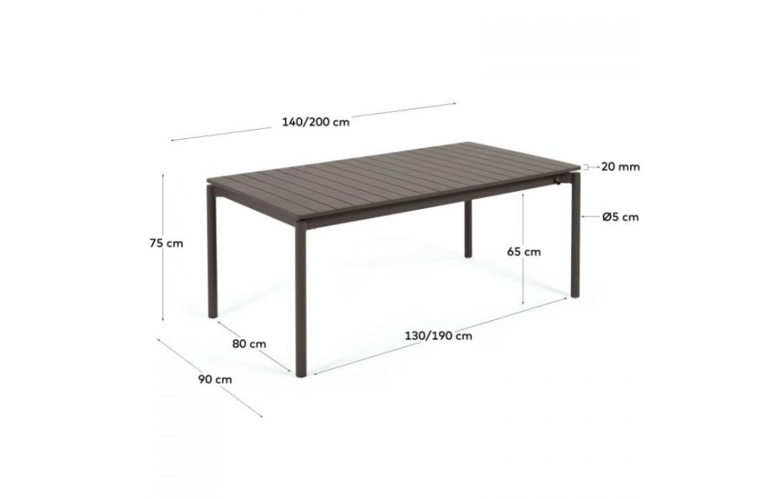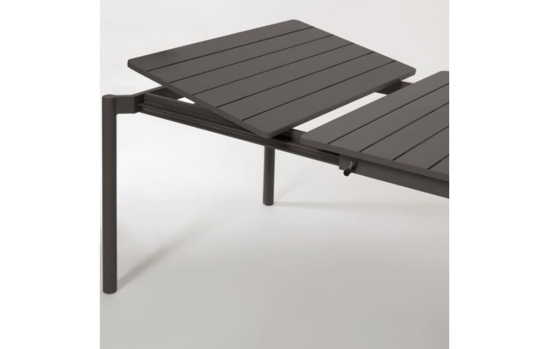 Mesa extensível em 100% alumínio de cor preto ideal para exteriores.