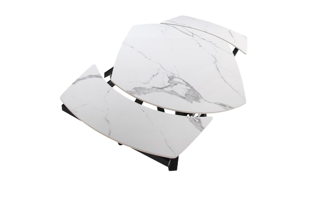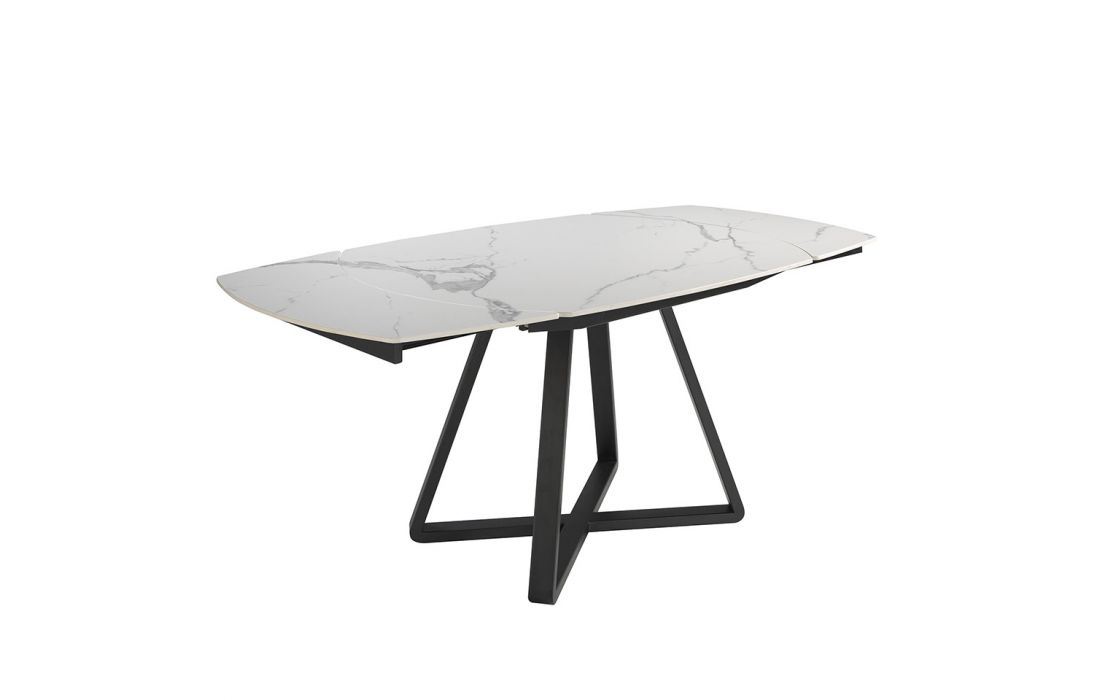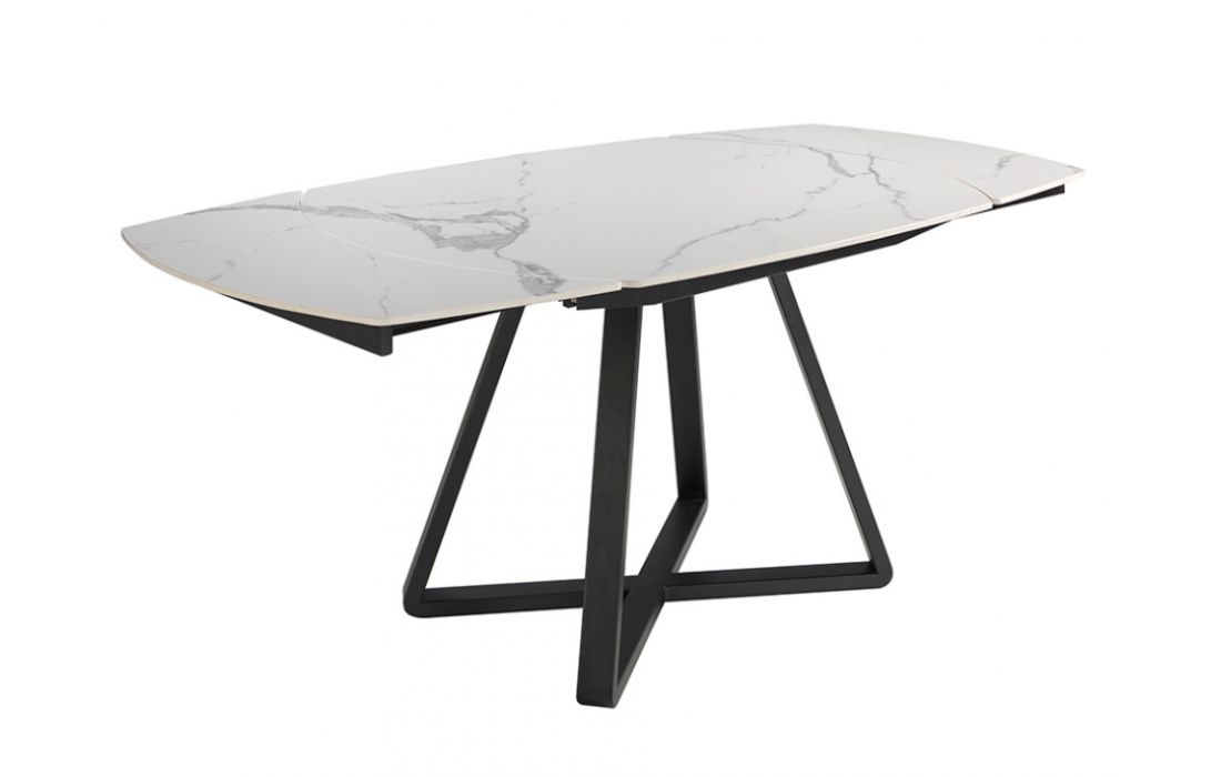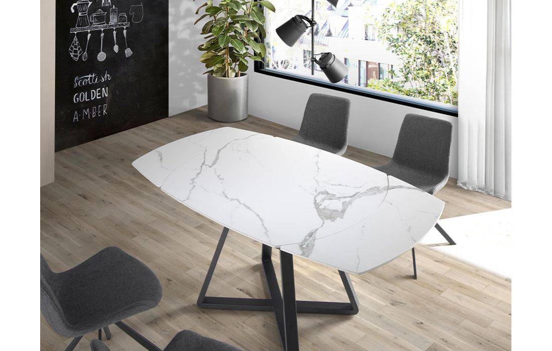 Mesa de jantar com tampo oval extensível em porcelana brancae base em açoDestinatário :