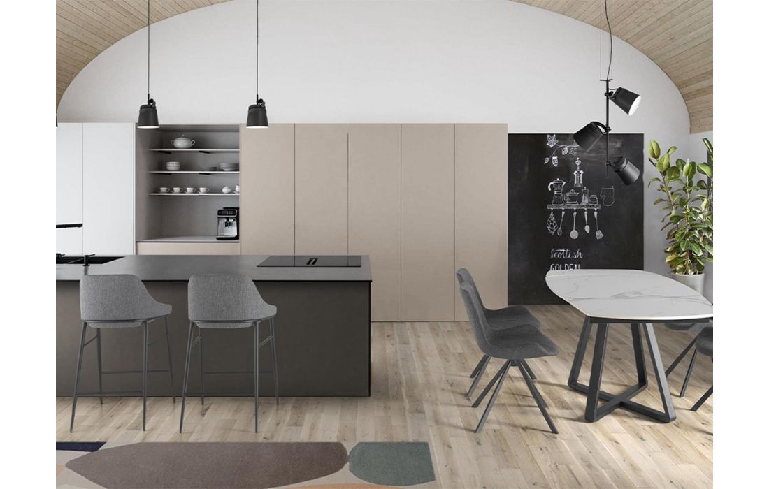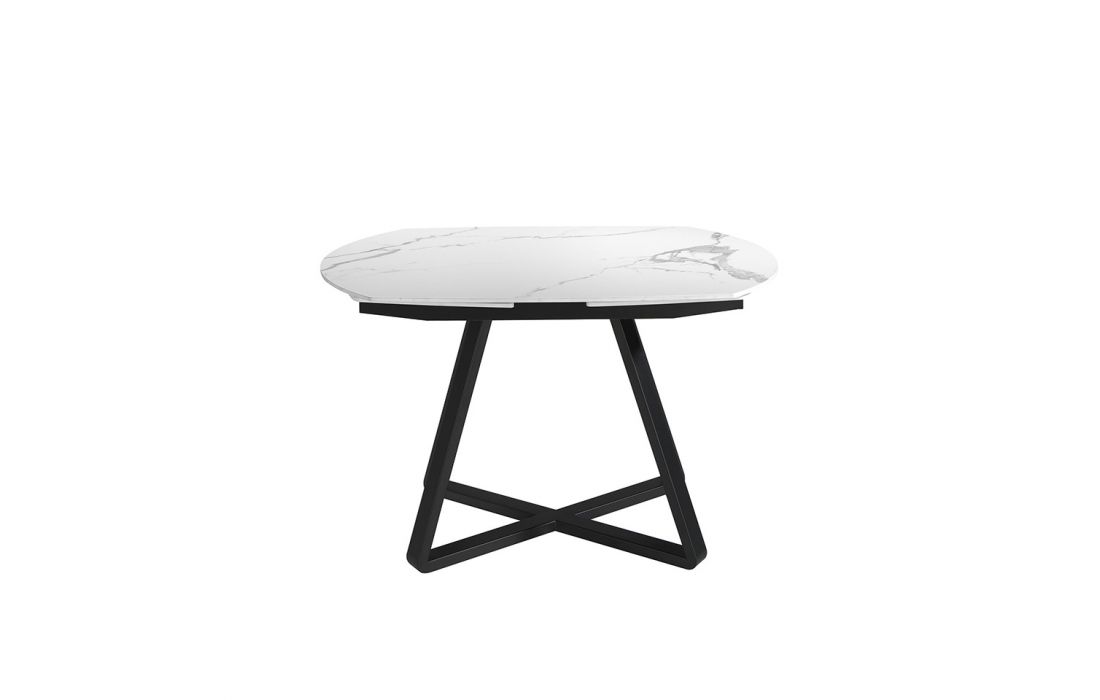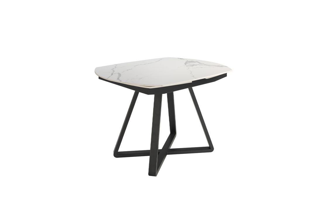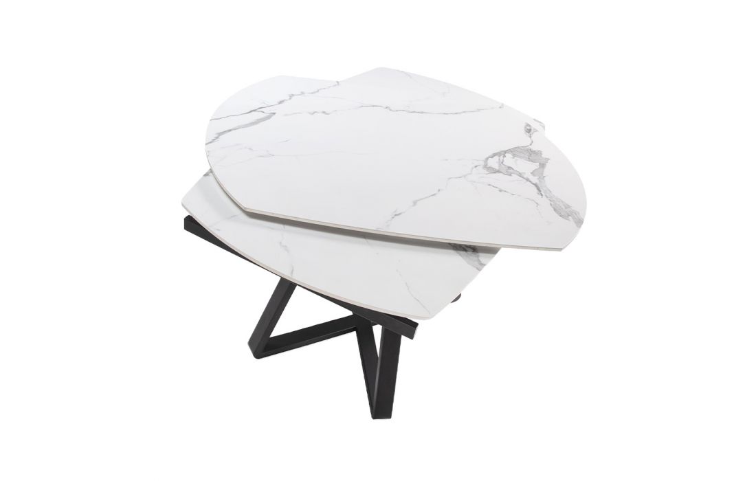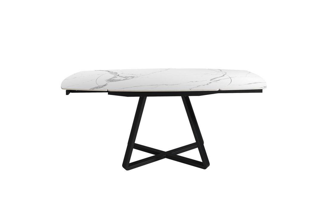 Mesa de jantar com tampo oval extensível em porcelana brancae base em açoDestinatário :