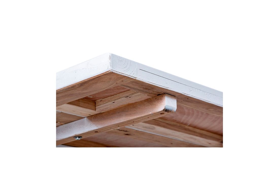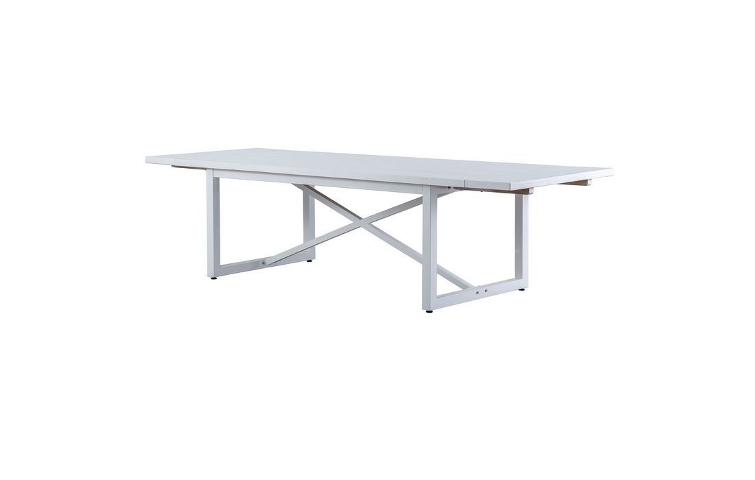 Mesa de jantar extensível em madeira de olmo reciclada com pés em metal branco