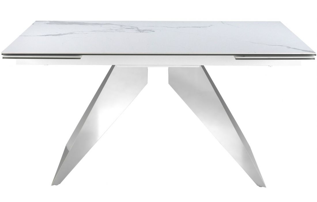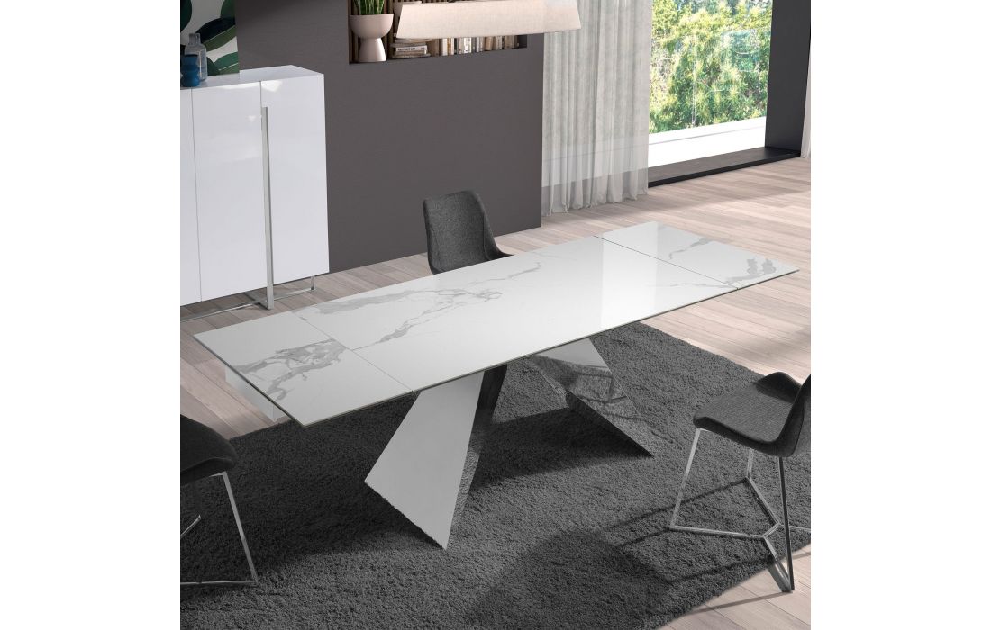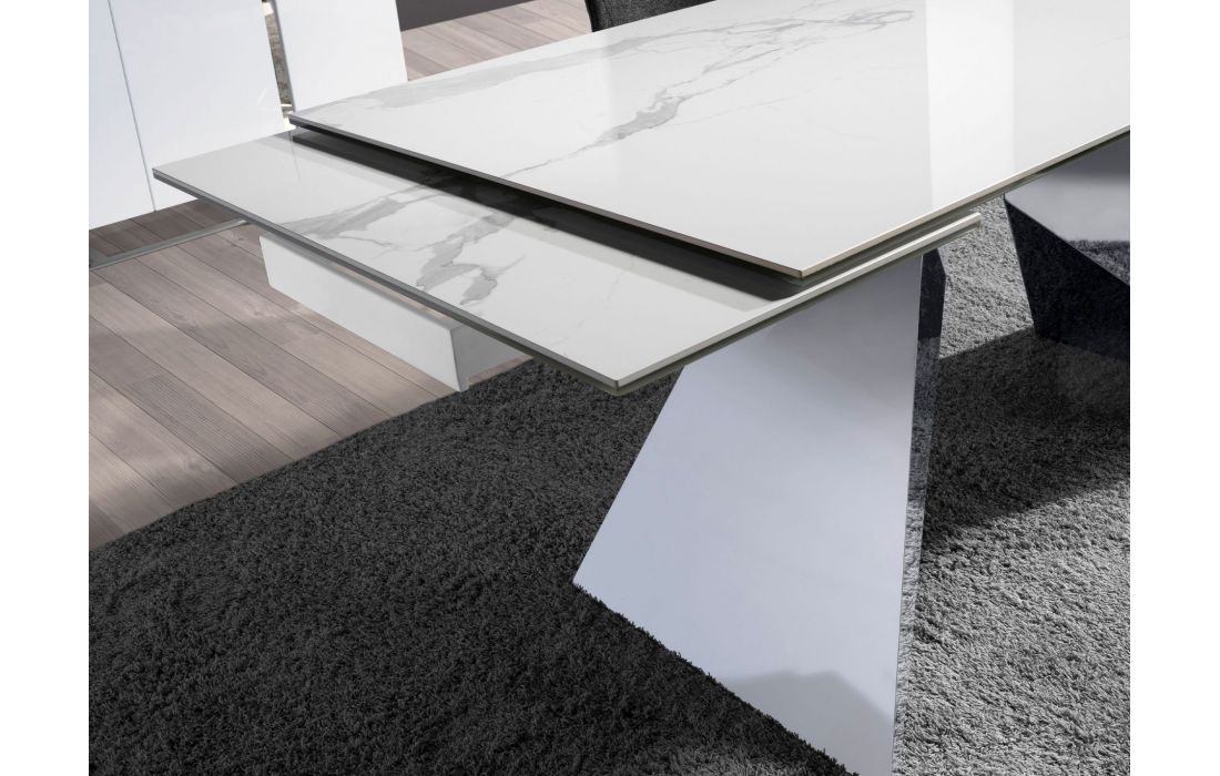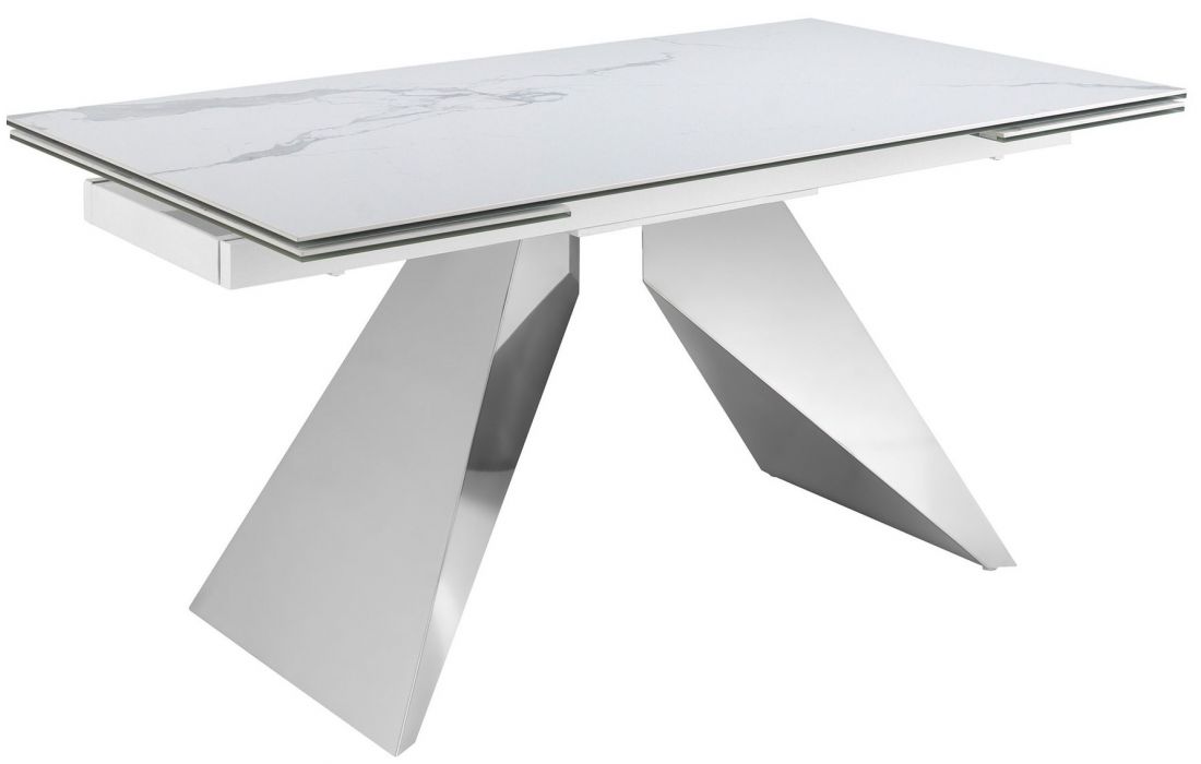 Mesa de jantar extensível retangular com tampo em mármore com acabamento brilhante e pés em aço inoxidávelDestinatário :