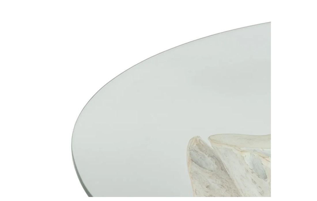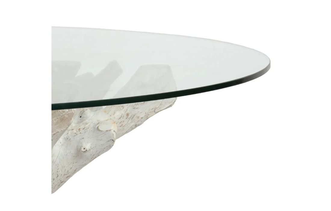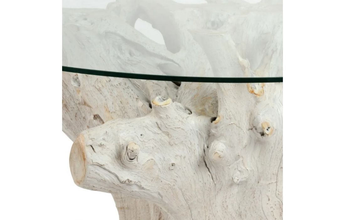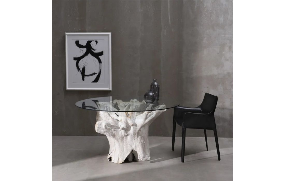 Mesa de jantar com tampo em vidro com pernas em madeira de teca.